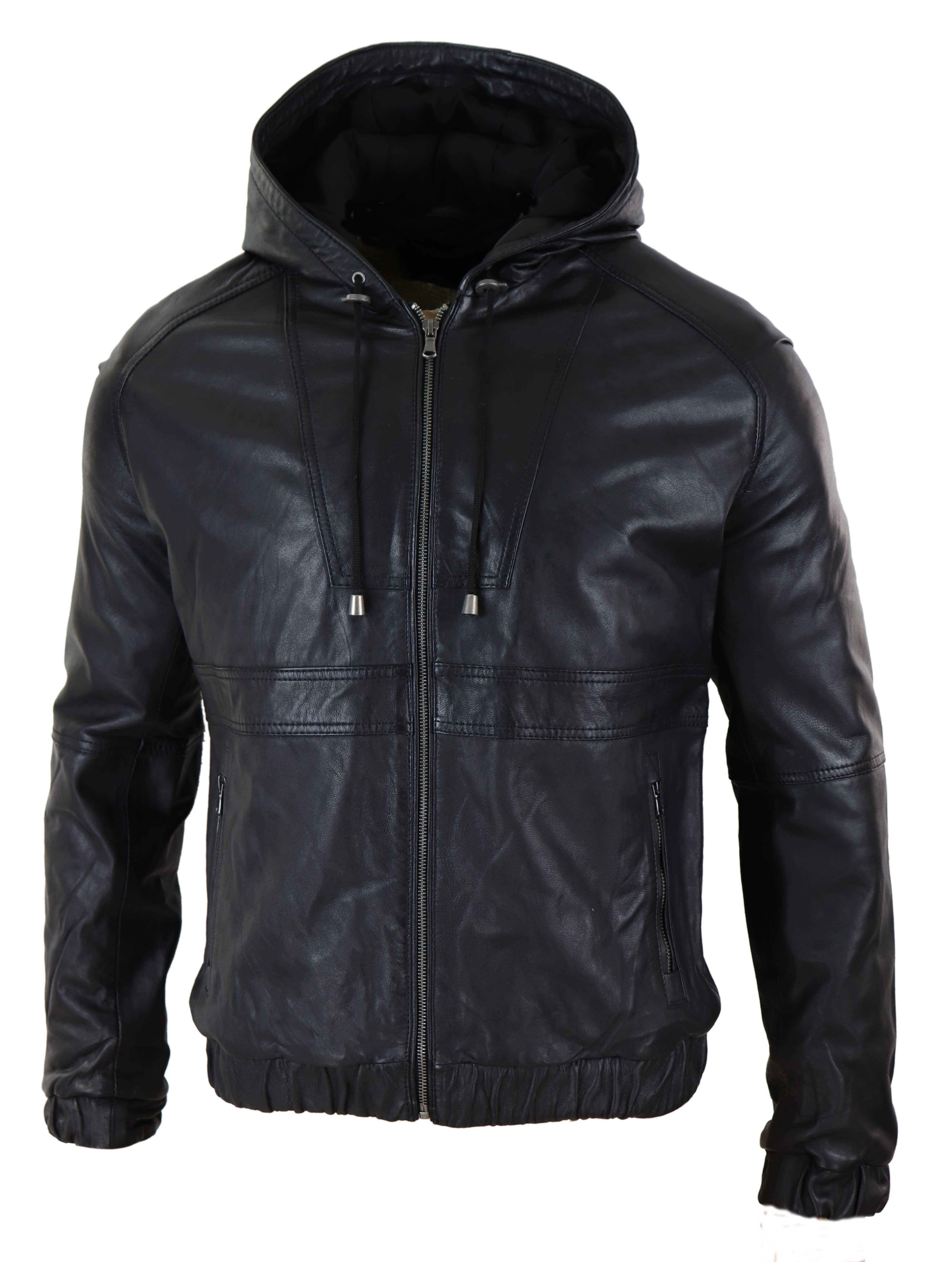 * Мужская куртка из натуральной кожи с капюшоном в стиле бомбер* Мужская куртка из натуральной кожи с капюшоном в стиле бомбер* Модель на молнии с капюшоном на шнурке, доступна в 2 потрясающих цветах!* Супермягкая овечья кожа с эластичными манжетами и талиейМатериал - Внешняя часть - 100% кожа; Подкладка - 100% полиэстер