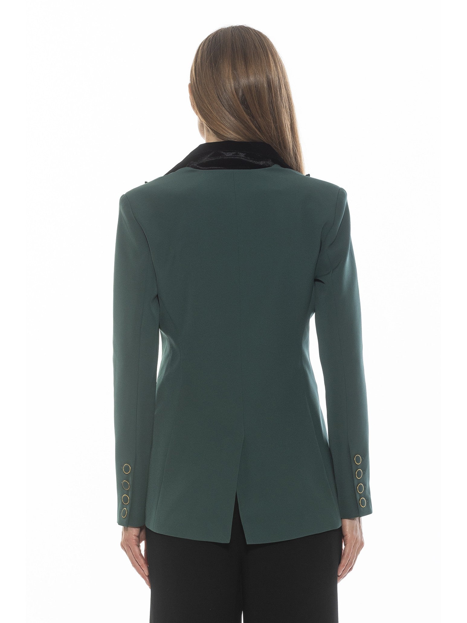 Контрастный воротникОтделка бархатомБлейзер с длинным рукавом97% полиэстер, 3% спандексПодкладка - 97% полиэстер, 3% спандексРучная стирка, сушка в подвешенном состоянииИмпортныйСтиль T652