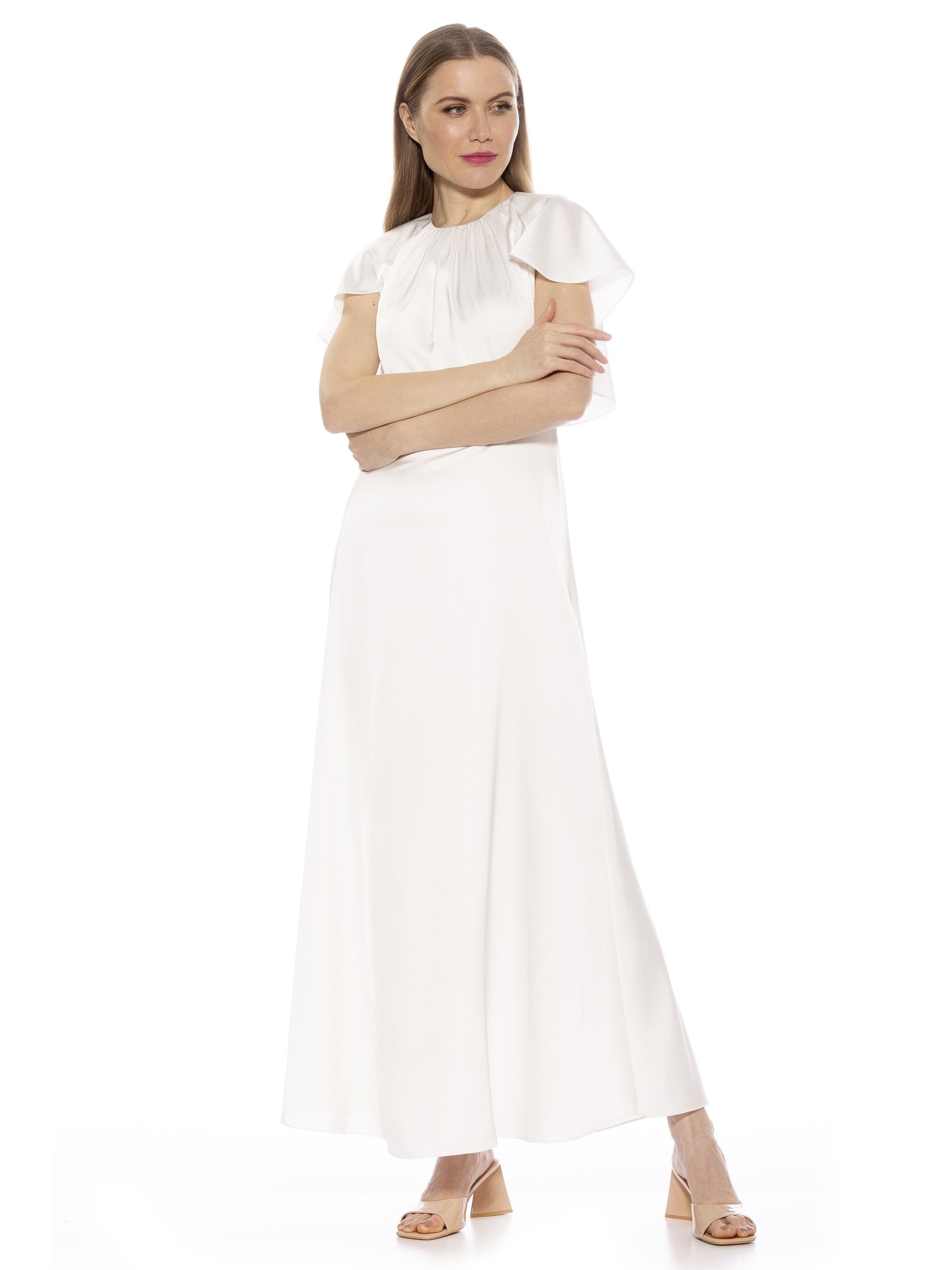 Круглый вырезРукав-колпачок FlutterПлатье миди100% полиэстер, подкладка 97% полиэстер 3% спанексМашинная стирка, сушка на веревкеИмпортныйСтиль D5074