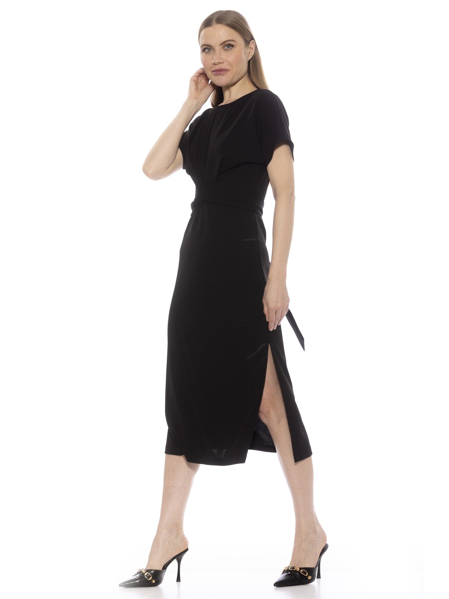 Вырез-лодочкаКороткий рукавЗавязка на талииПлатье-футлярПлатье миди95% полиэстер 5% спандекс, подкладка - 100% полиэстерМашинная стирка, сушка в сушильной машинеИмпортныйСтиль D5068