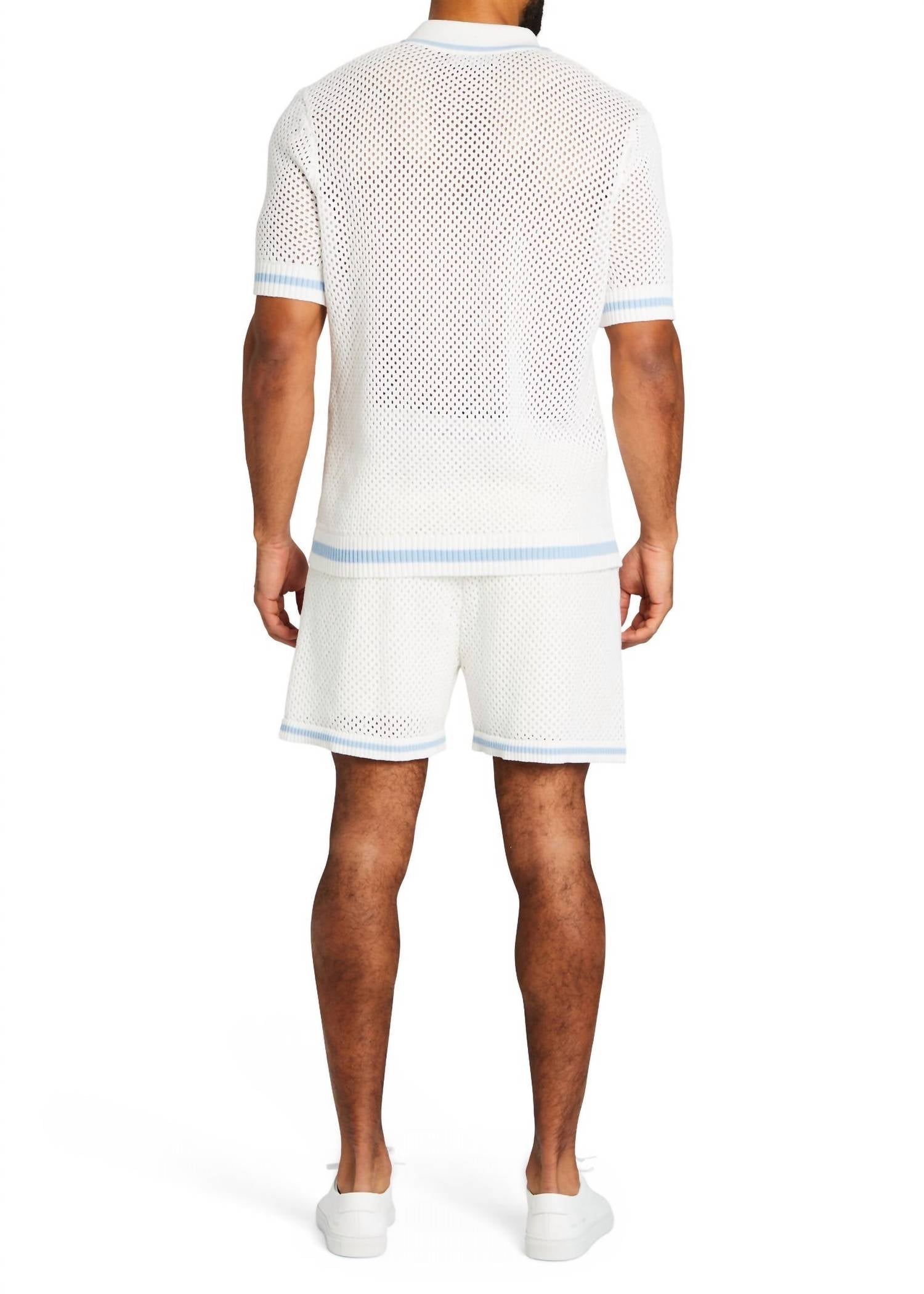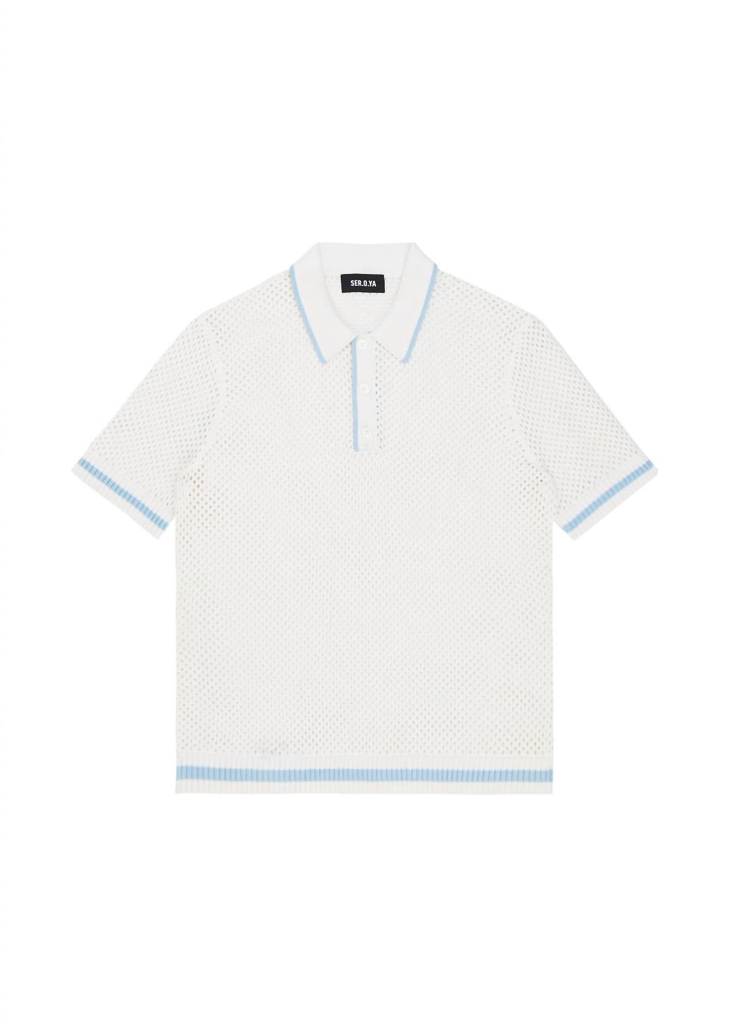 Вязаное крючком поло с контрастными цветами на воротнике, манжетах и подоле. Ребристая отделка по подолу. Модель ростом 5 футов 11 дюймов носит размер L, 100% хлопок. Сделано в Китае.