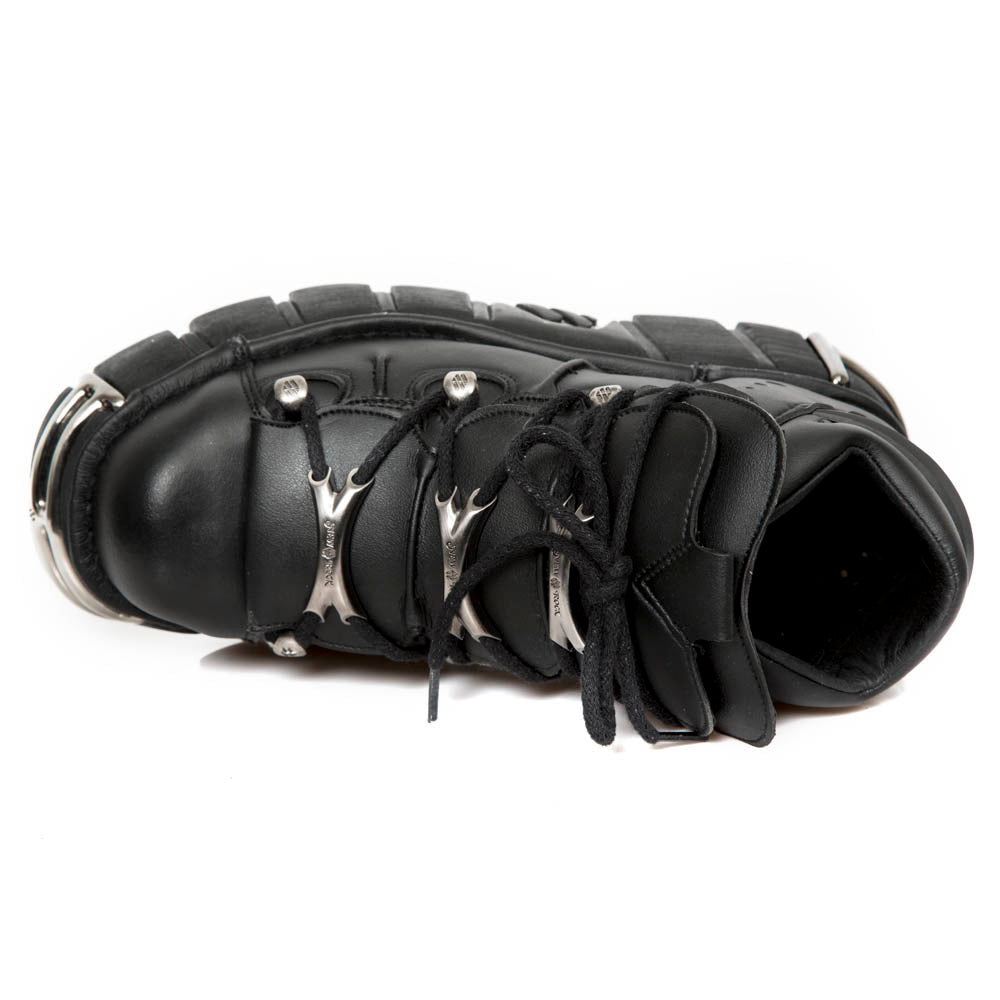 Готические ботинки New Rock M-106-VS1 сочетают в себе агрессивный дизайн и качественное исполнение. Модель выполнена в унисекс-стиле, идеально вписываясь в образы панк-рок, эмо и гот-субкультур. Высокий верх до щиколотки обеспечивает дополнительную поддержку голени и создает выразительный силуэт.