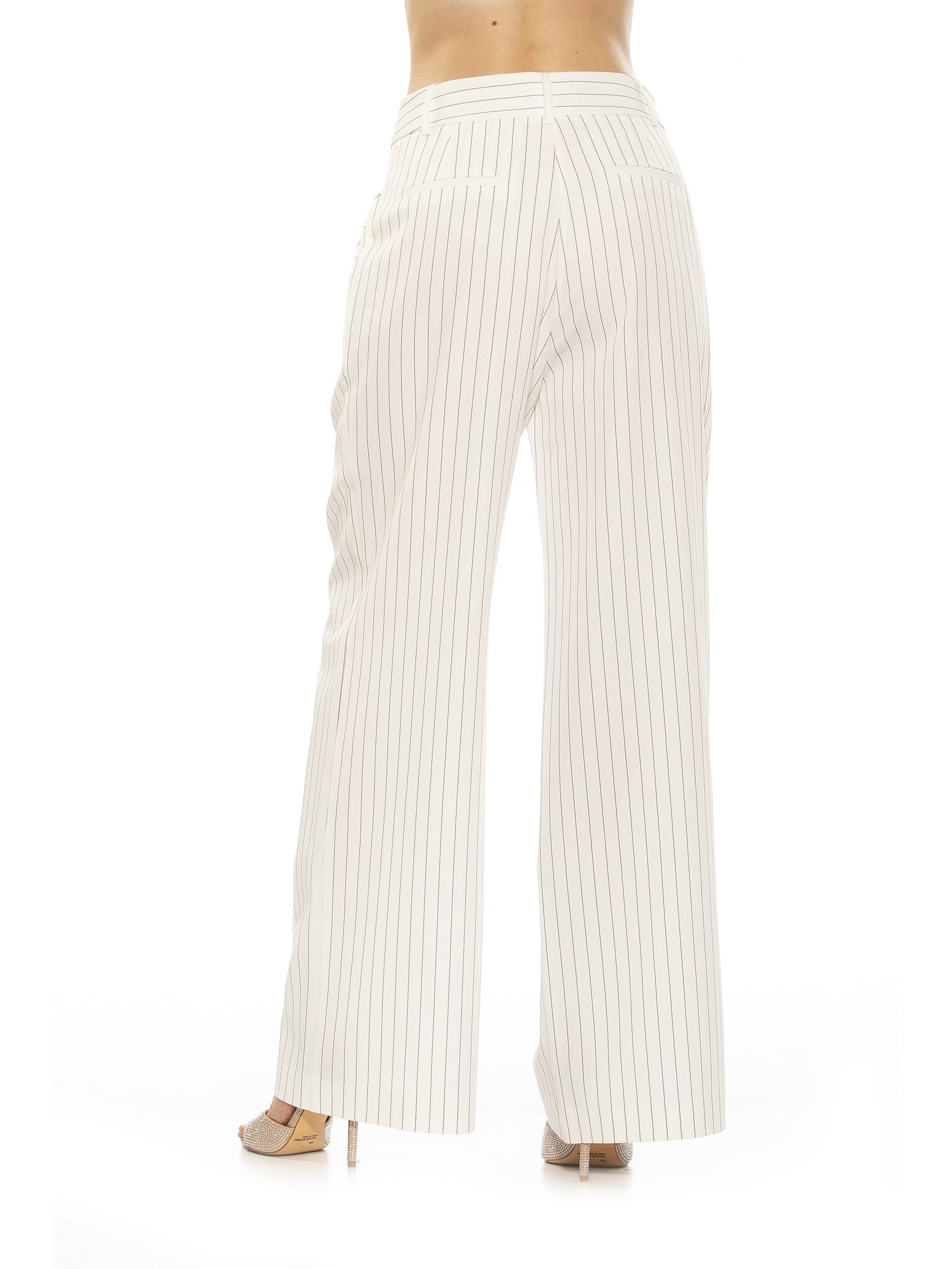 Представляем наши брюки Elodie, роскошное дополнение к вашему гардеробу. Эти плиссированные брюки в тонкую полоску предлагают льстивую посадку с высокой талией и широкие штанины для шикарного и утонченного образа. Поднимите любой наряд и излучайте элегантность с брюками Elodie.