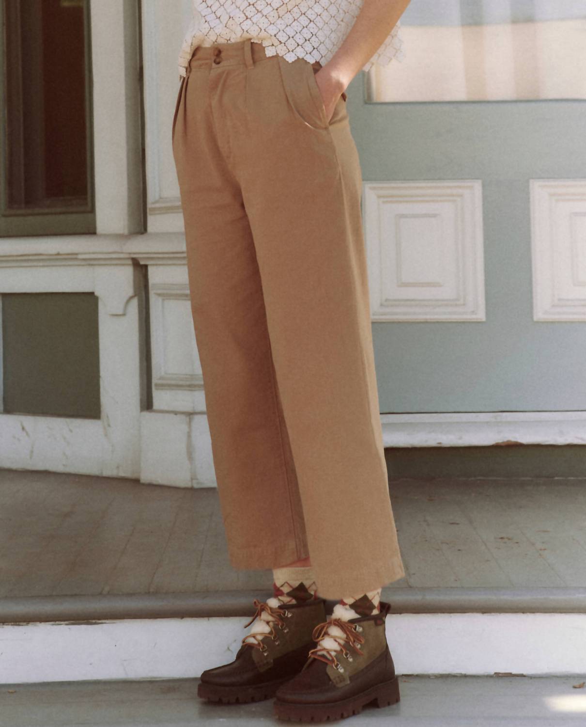 100% хлопок. Эти брюки сшиты на заказ и отличаются классическим кроем и деталями винтажной мужской одежды, такими как двойные складки на талии, прорезные карманы с изогнутыми клапанами и ширинка на пуговицах. Средняя посадка и прямой крой. Машинная стирка в холодной воде. Импортные. Модель ростом 5 футов 10 дюймов носит размер 26.