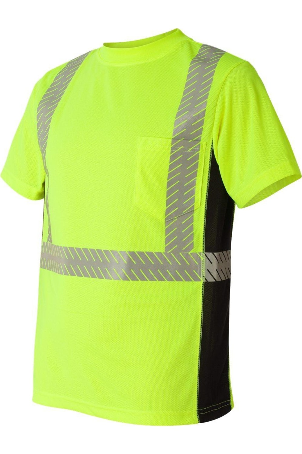 4,13 унции/ярд, 100% полиэстеровый материал Birdseye. Микрофибра, отводит влагу. 2 широкие высокоэффективные дышащие светоотражающие ленты значительно уменьшают количество горячих точек и обеспечивают большую гибкость по сравнению с сплошными лентами. Черные боковины обеспечивают контраст и добавляют спортивный вид. Левый нагрудный карман. Лайм (9114), оранжевый (9115), флуоресцентный красный (9700). Соответствует ANSI 107 Type R Class 2.