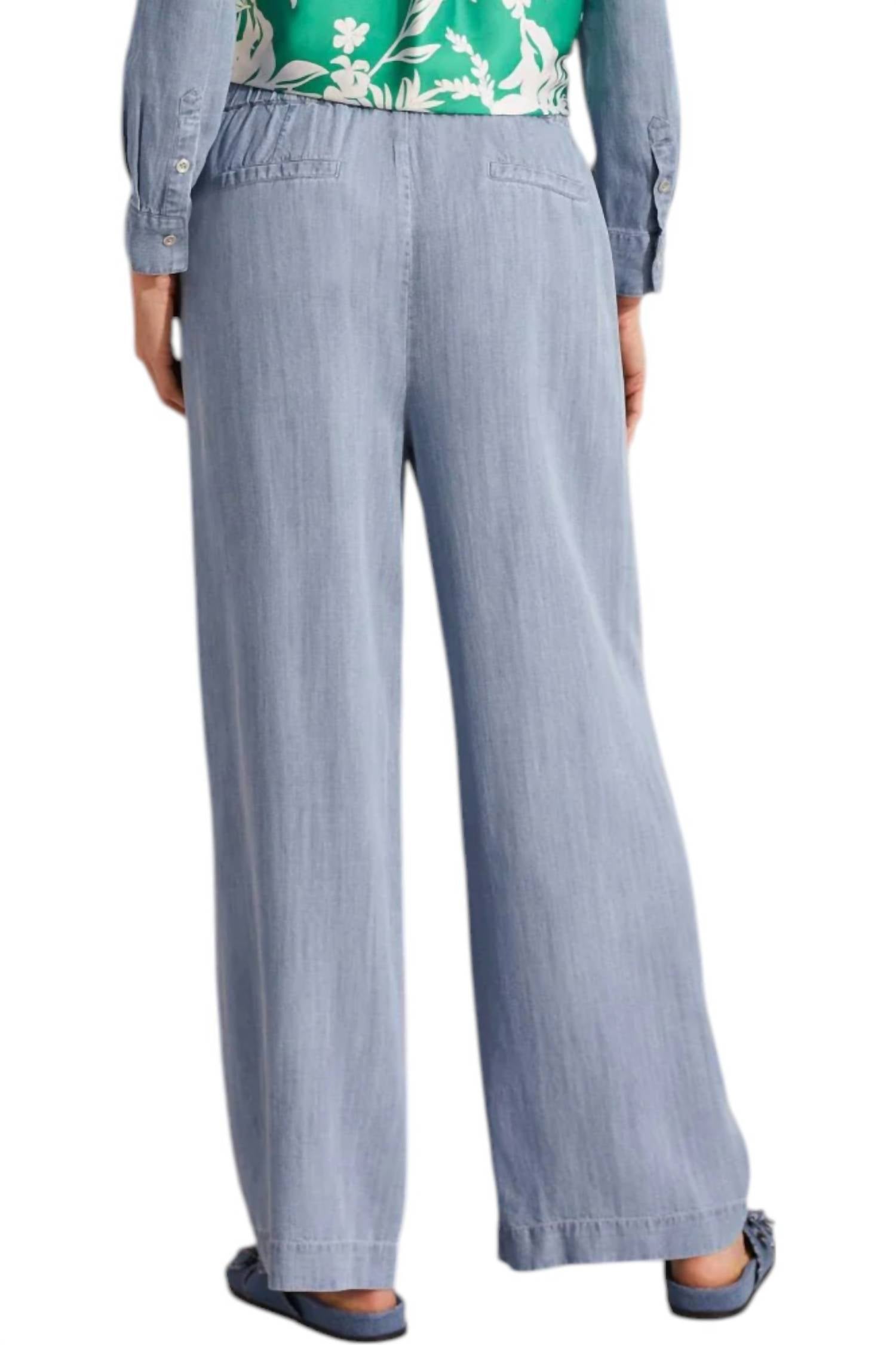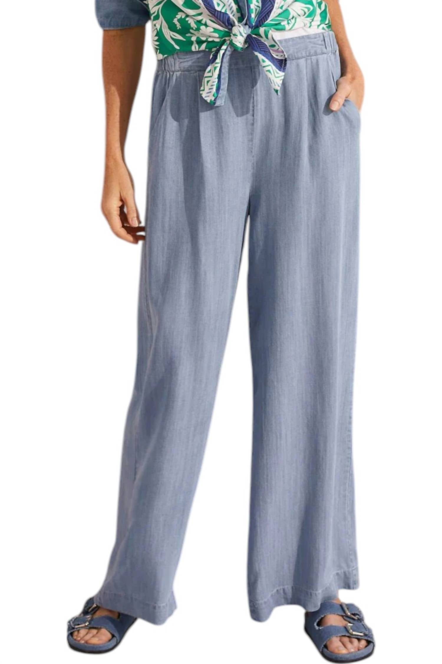 Вдохновлено стилем бохо. Изготовлено из ткани шамбре в ярком цвете Tideblue. Свободный, струящийся крой со средней посадкой на талии. Имеет надеваемый дизайн с плоским передом и эластичной спинкой для комфорта. Наряду с функциональными боковыми карманами и декоративными задними карманами. Внутренний шов 31 дюйм обеспечивает полный стиль.