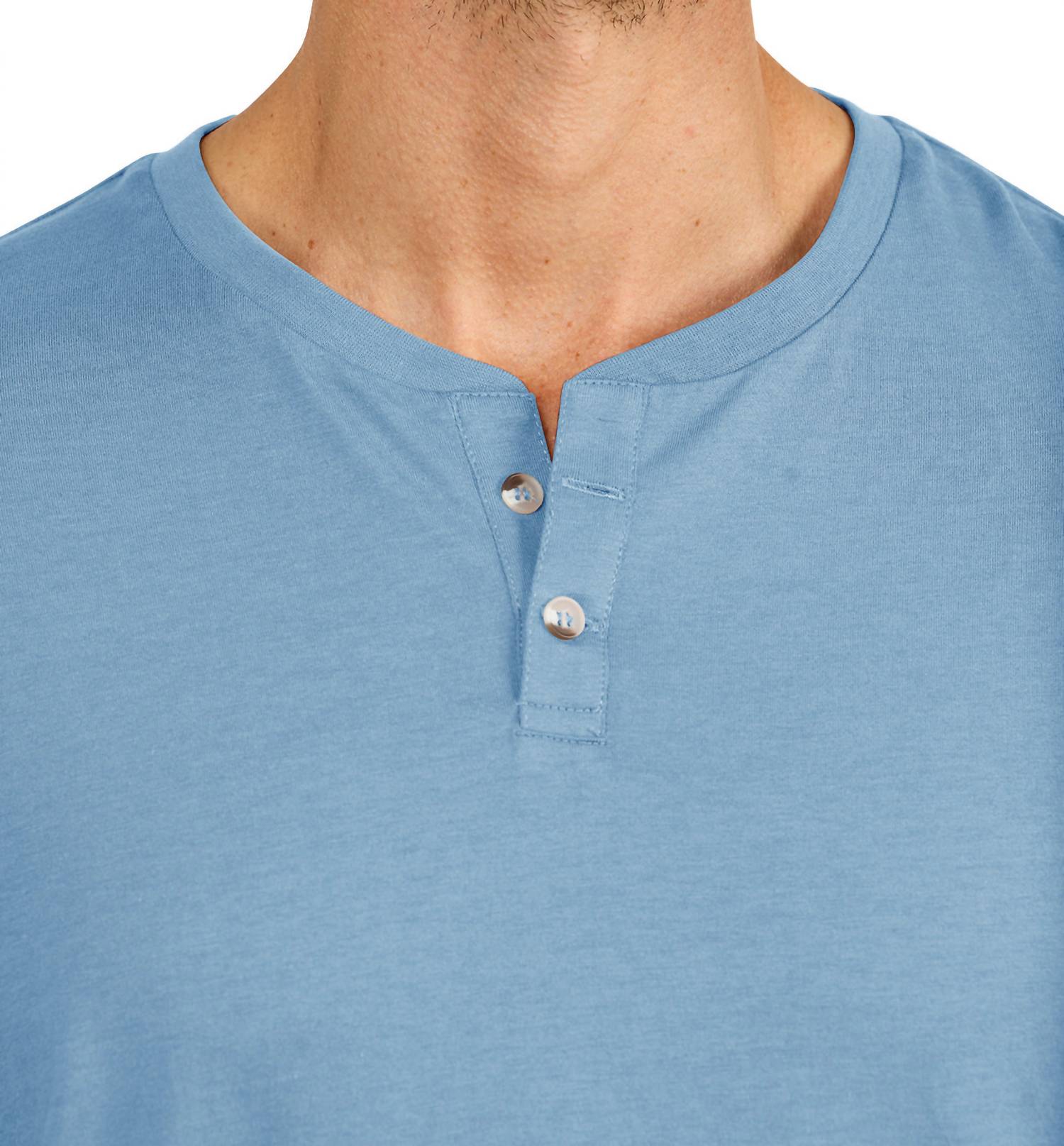 45% Вискоза из бамбука / 55% Хлопок. Очень мягкий, состаренный на ощупь. Ребристый вырез горловины