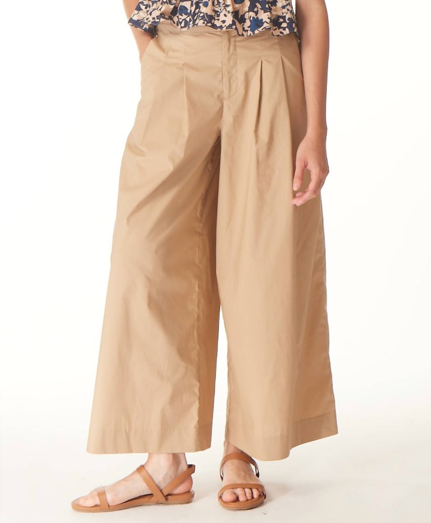 Брюки Khaki Lizzy имеют плиссированный дизайн, широкие штанины и длину до щиколотки. У них есть карманы, эластичная талия сзади и молния спереди для удобства надевания.