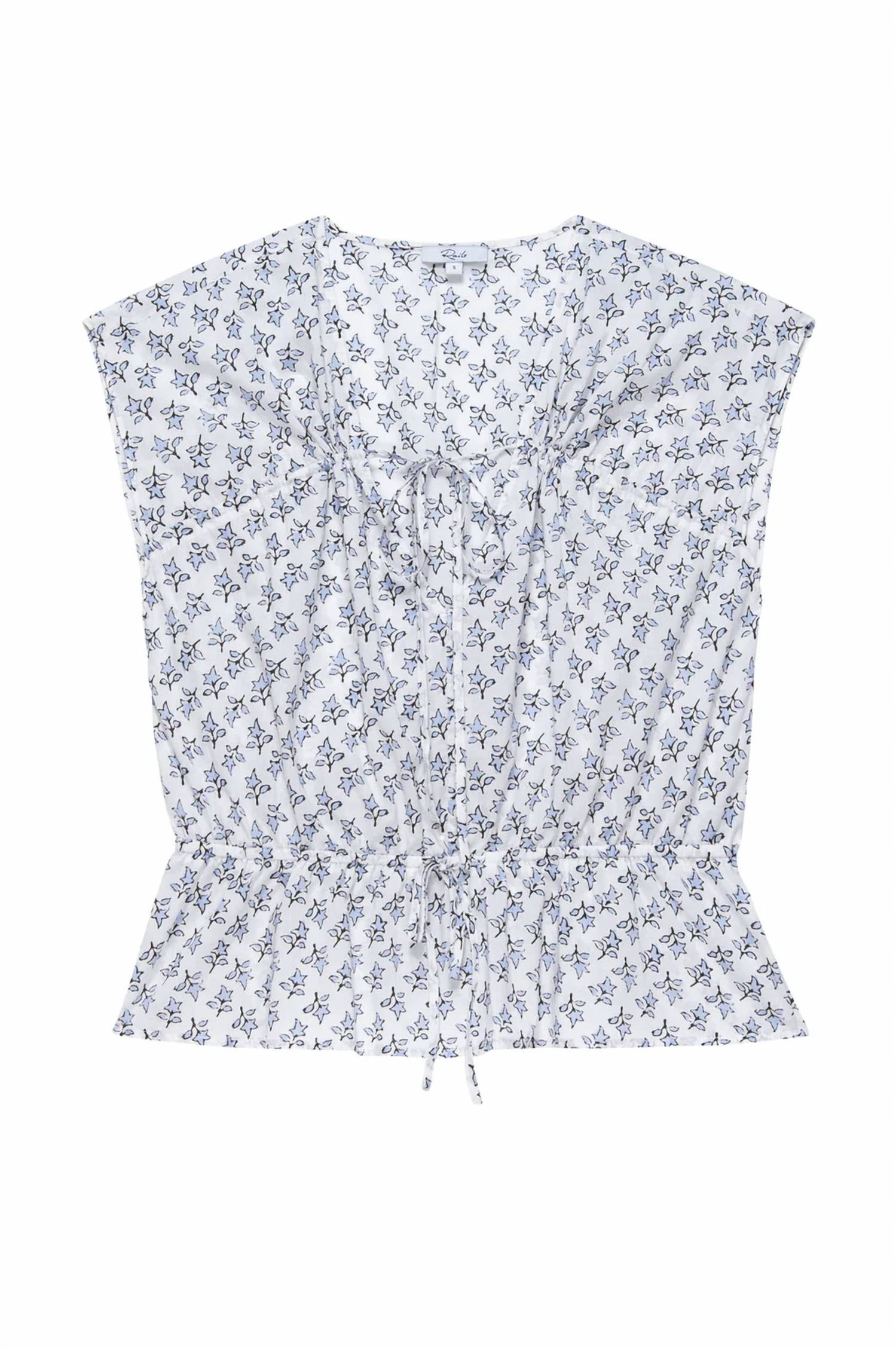 Верхний шнурок позволяет вам настроить вырез, а второй шнурок стягивает талию, создавая образ в стиле пеплум. Эта рубашка с рисунком и рукавами-крылышками изготовлена из легкого пляжного хлопка. Ткань - 100% хлопок. Ручная стирка в холодной воде. Соответствует размеру. На модели размер S. Длина спереди по фигуре - 22 дюйма (измерено от маленького размера).