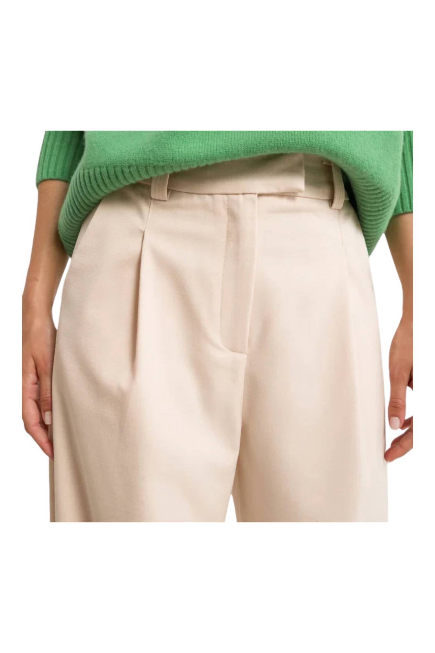 Высокая талия. Плиссированный дизайн. Силуэт полной ноги. 68% полиэстер, 22% вискоза, 8% шерсть, 2% эластан.
