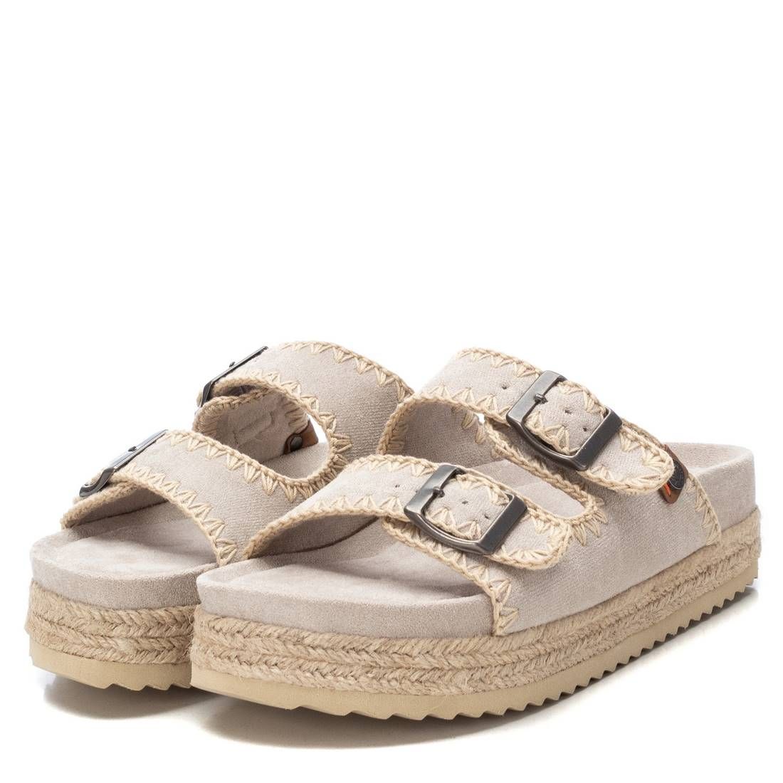Поднимите свой стиль на новый уровень с Xti Shoes! Эти замшевые сандалии на плоской подошве — идеальное сочетание повседневности и комфорта. Трендовый дизайн, который подойдет к любому наряду. Детали из плетеного джута. Легко вдеваются. Прочная нескользящая резиновая подошва.