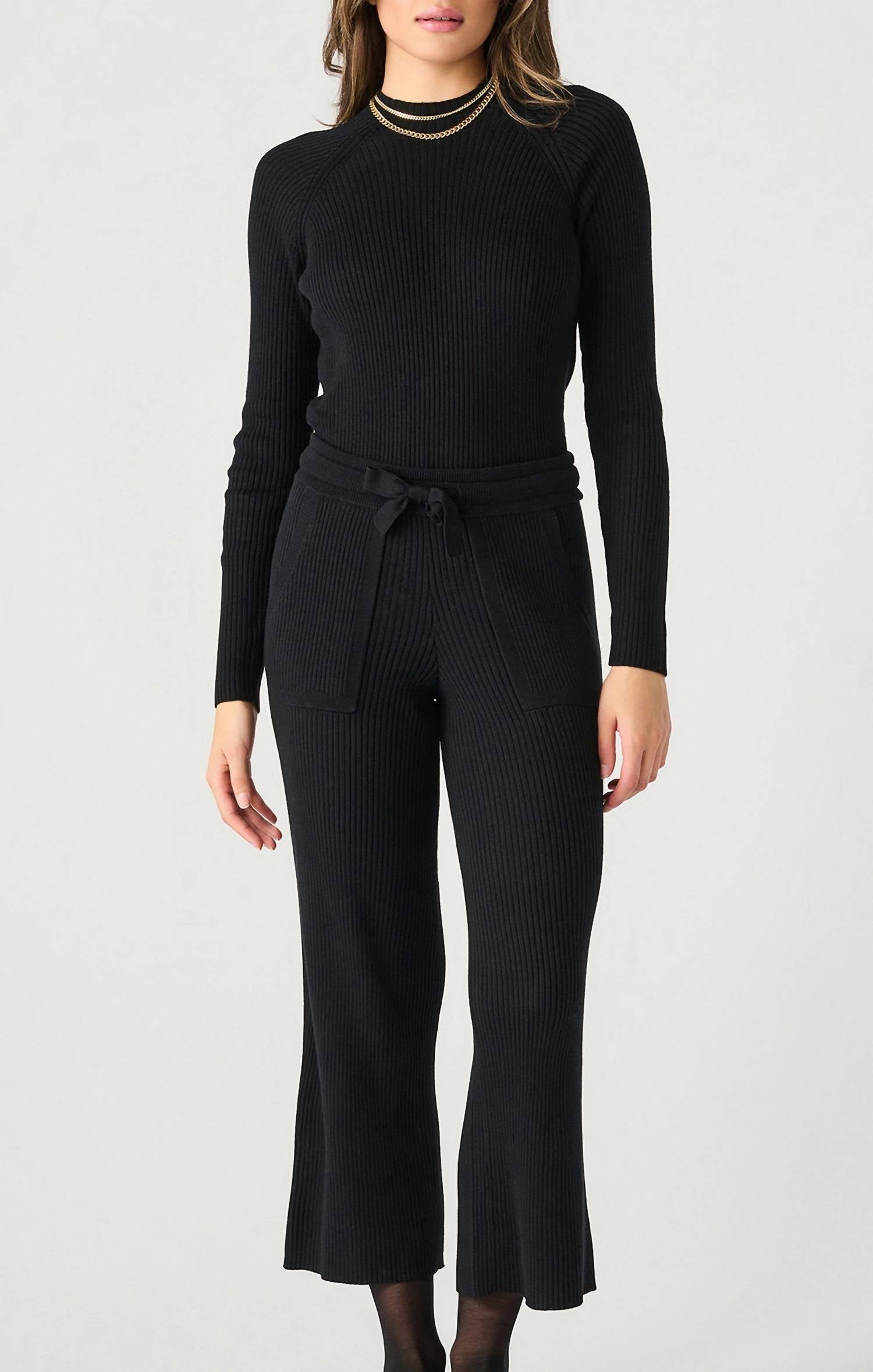 Эти ребристые брюки-свитера длиной до щиколотки с небольшим клешем, эластичным поясом на завязках и функциональными карманами. Изготовленные из мягкой смеси 80% вискозы и 20% нейлона, они сочетают в себе стиль и комфорт с легкостью надевания.