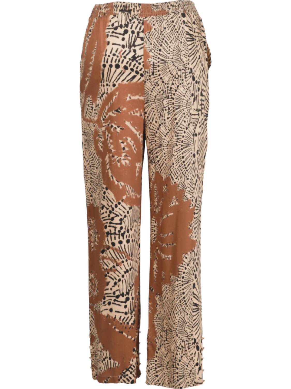 Нежный абрикосовый оттенок. Изготовлены из мягкой, дышащей вискозы. Узорчатые брюки гармонично сочетают комфорт и стиль. Разработаны с высокой посадкой на талии. Облегающий крой, подчеркивающий ваш силуэт. Прямой крой штанин. Расстегните для создания образа с широкими штанинами или застегните их на пуговицы для более смелого вида брюк. Неброский, но привлекающий внимание рисунок. Практичные карманы и застежка-липучка. Они столь же функциональны, сколь и модны.