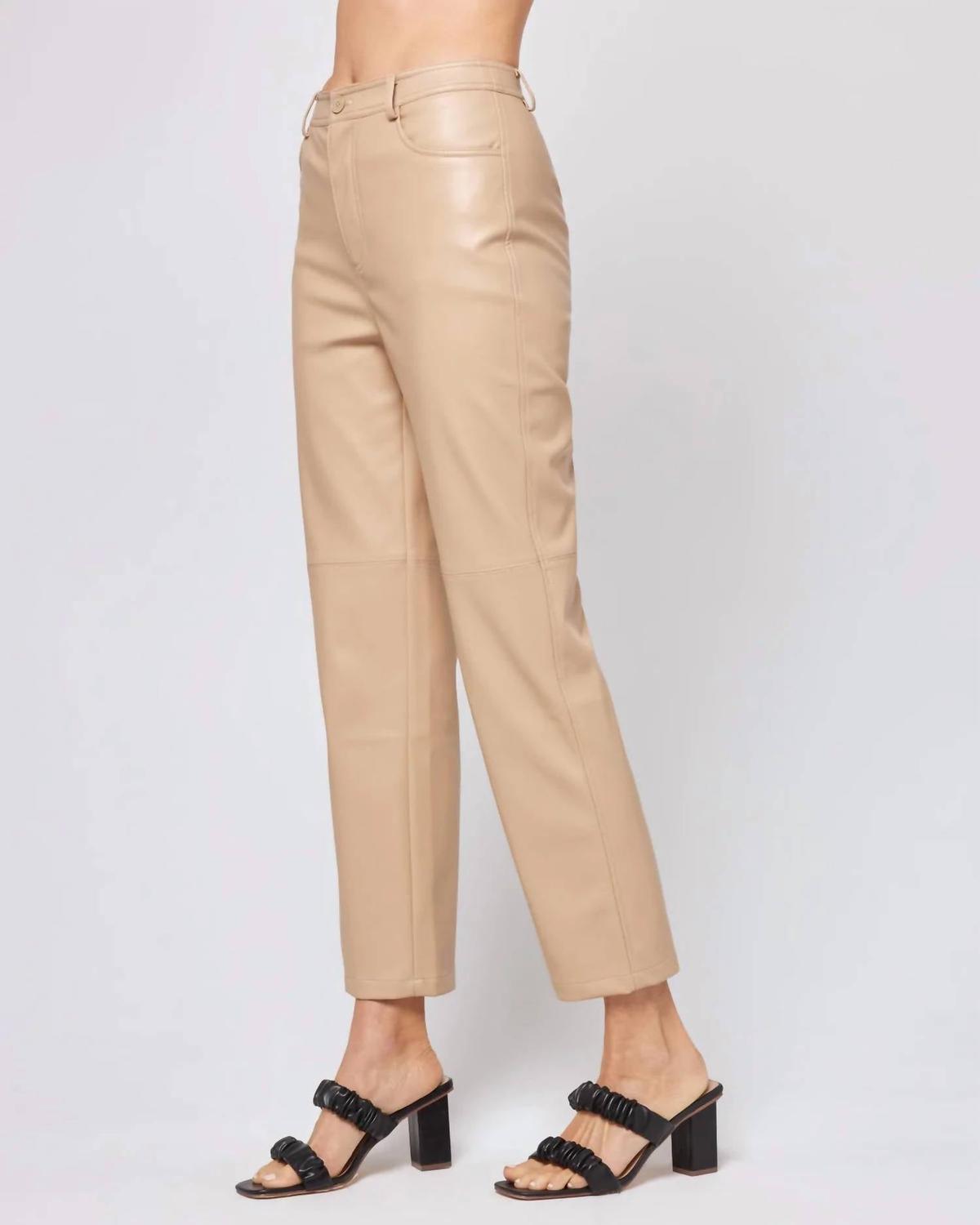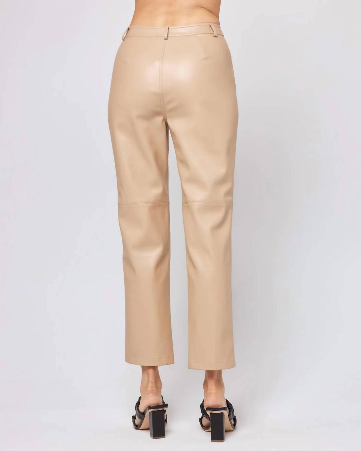 Брюки из веганской кожи. Шлевки для ремня. Застежка на пуговицу и молнию. Шов с крестообразным швом выше колена. Эластичный пояс. Брюки полной длины. Мягкий клеш. 50% вискоза, 30% полиэстер, 20% нейлон. Как и все деликатные ткани, форма, цвет и посадка лучше всего сохраняются при ручной стирке в холодной воде. Сушить в горизонтальном положении. Модель # QUIPA23.
