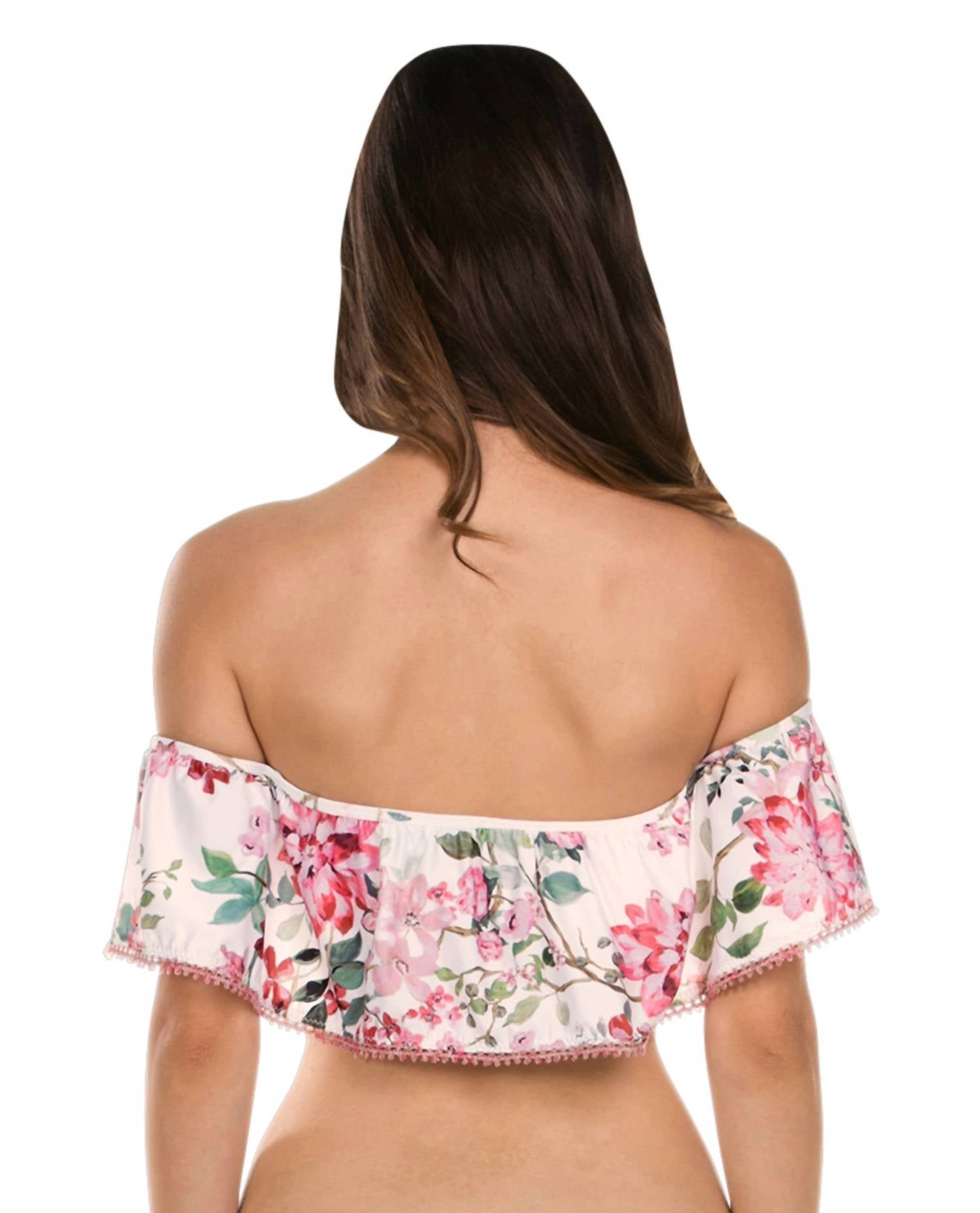 Дополните свой комплект любыми плавками. Верх бикини с вырезом-бандо. Детали из ракушек-макраме. Регулируемый ремешок-халтер. Завязки сзади для дополнительной регулировки. Мягкие чашечки. 83% полиэстер / 17% спандекс.