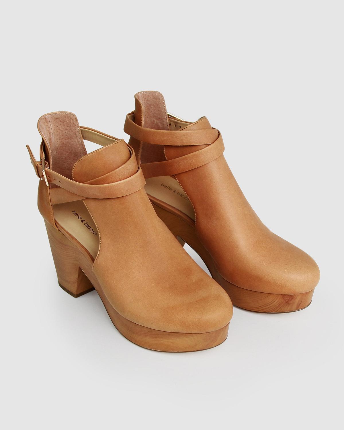 Платформа и каблук с отделкой под дерево добавляют атмосферу 70-х годов к ботинкам Fearless Clog Ankle Boot от Belle and Bloom. Благодаря авангардным вырезам по бокам и регулируемым ремешкам на щиколотке эти сабо обязательно привлекут внимание с любым нарядом.