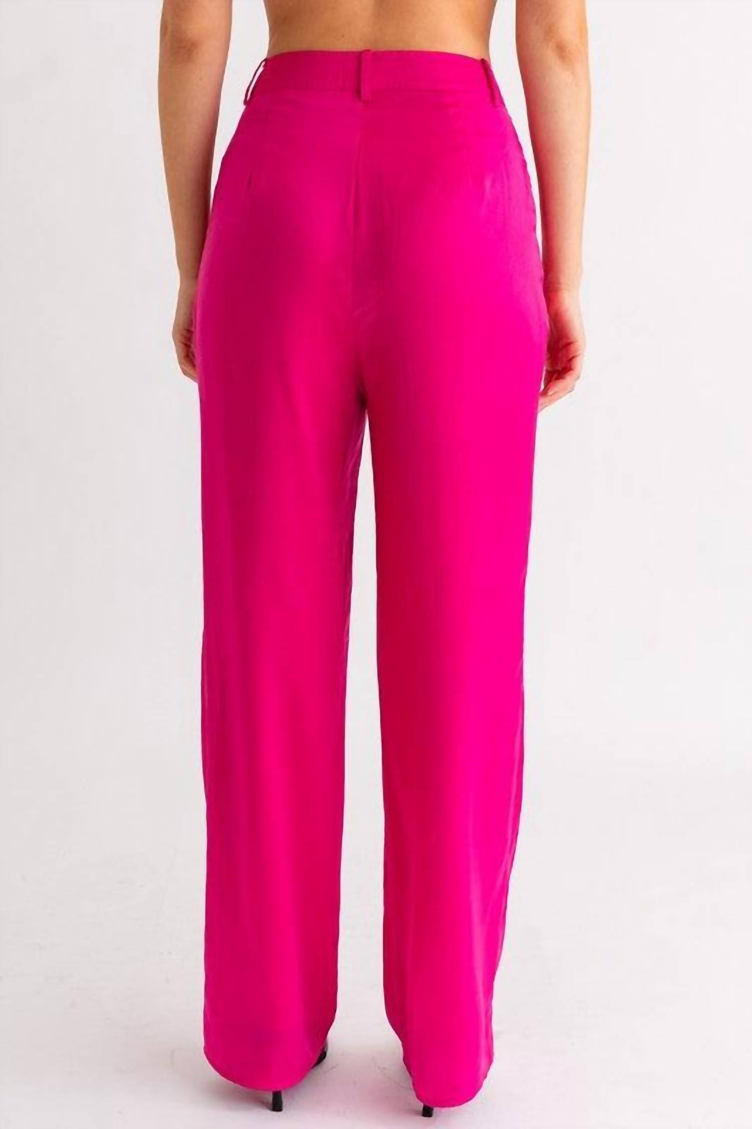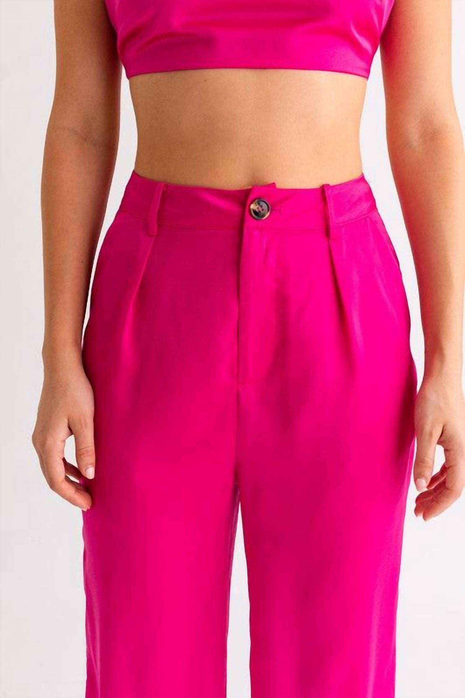 Обратите на себя внимание, когда вы входите в наших ярко-розовых атласных брюках! Эти брюки-платья с одинарной складкой имеют широкий крой, боковые карманы и шлевки для ремня. Подкладка. Сама ткань - 100% полиэстер. Подкладка - 65% хлопок, 45% нейлон. Ручная стирка в холодной воде/Сушка на веревке.