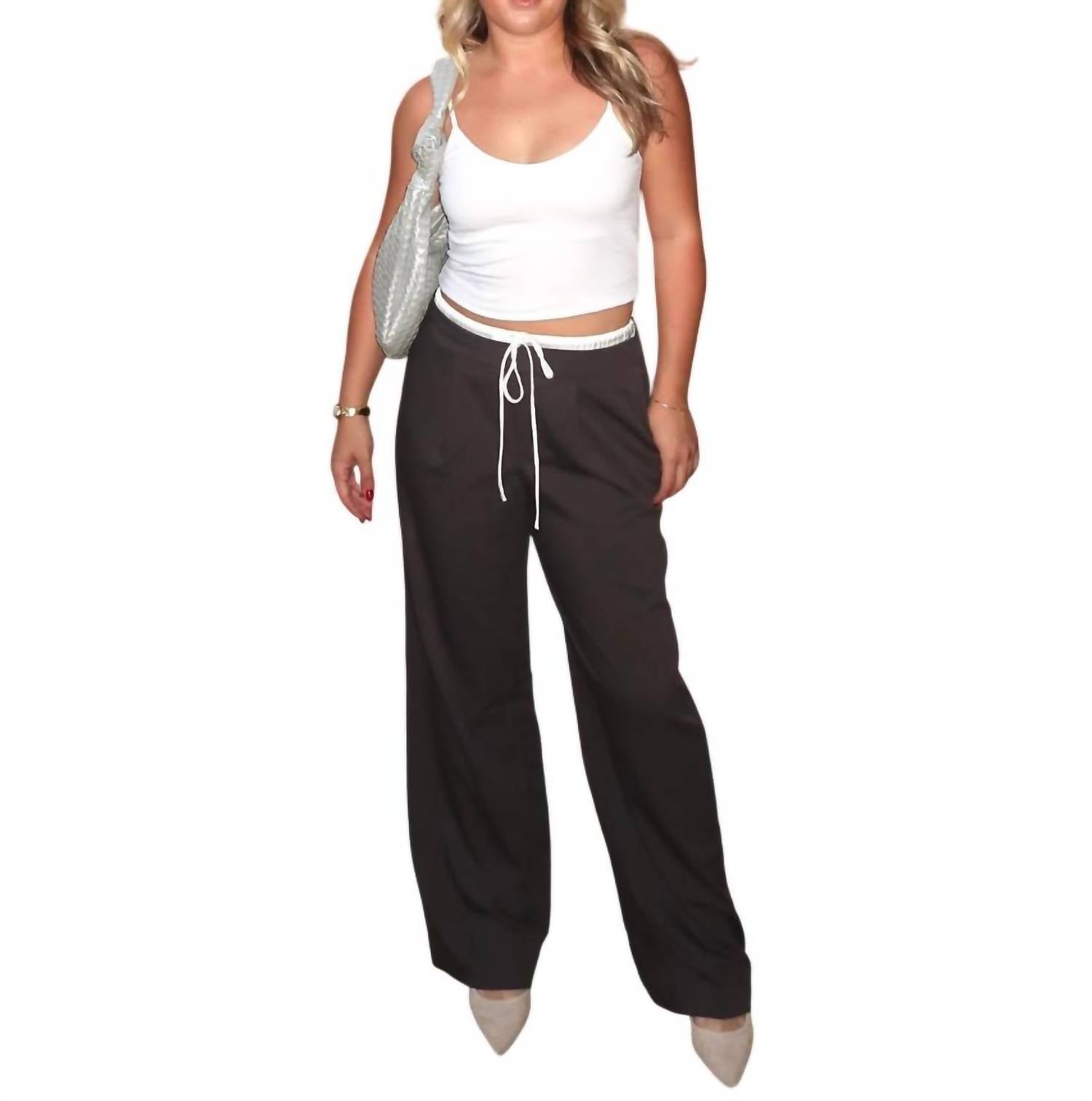 Откройте для себя максимальный комфорт и стиль с брюками Back In It Trouser Pant от Loucia. Эти женские брюки отличаются шикарным черным цветом и средней посадкой, дополнены контрастным атласным поясом и завязкой для изысканного штриха. Эти брюки с широкими штанинами и практичными передними карманами сочетают в себе моду и функциональность.