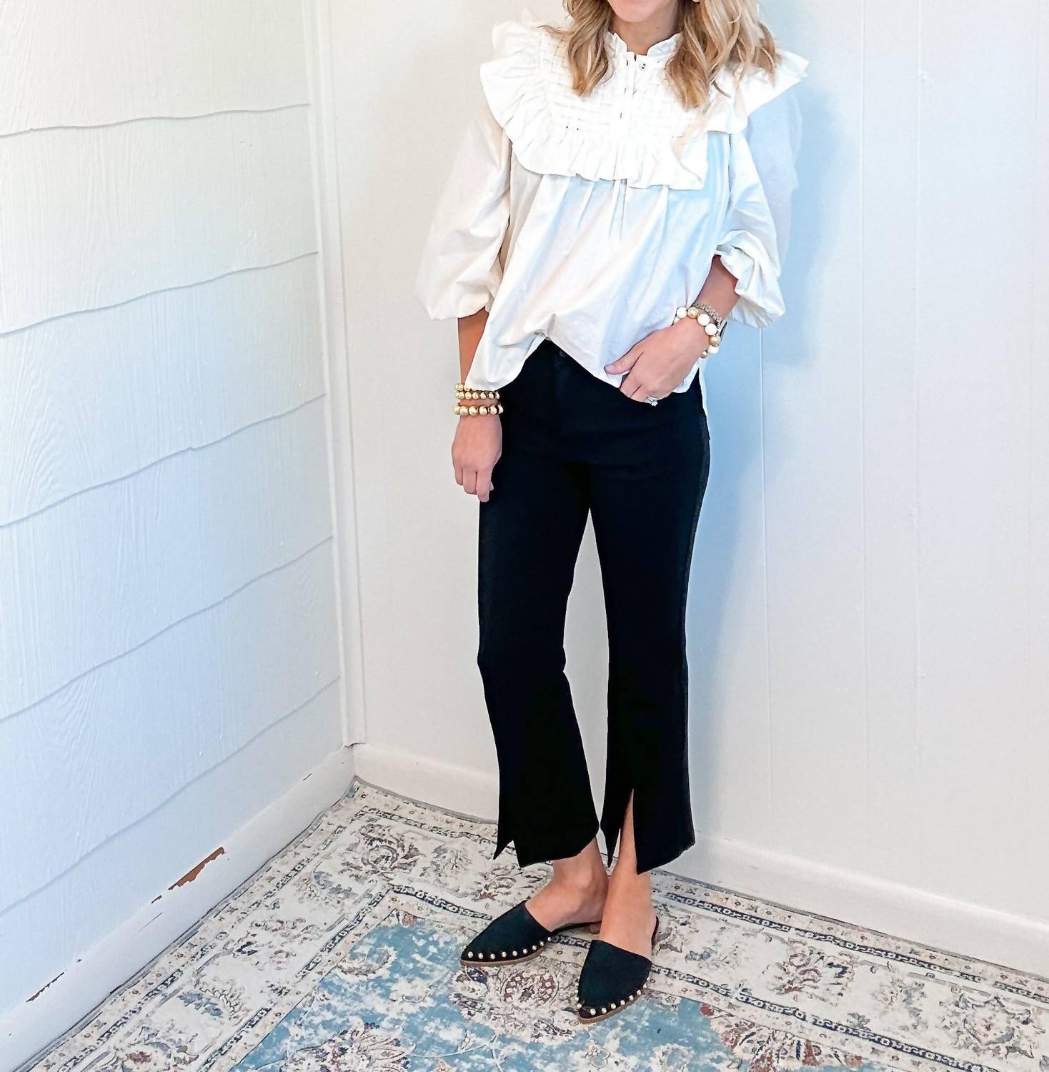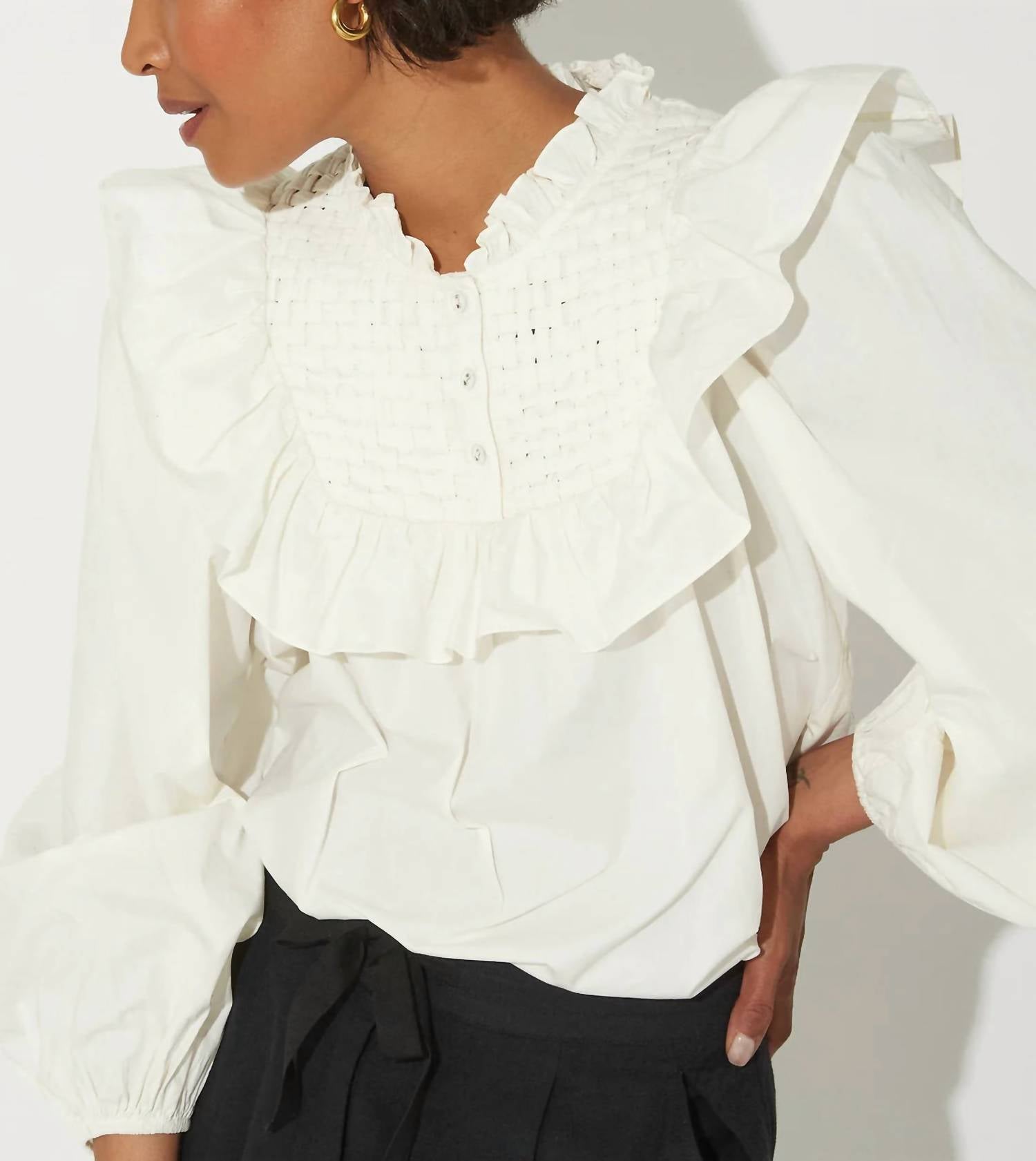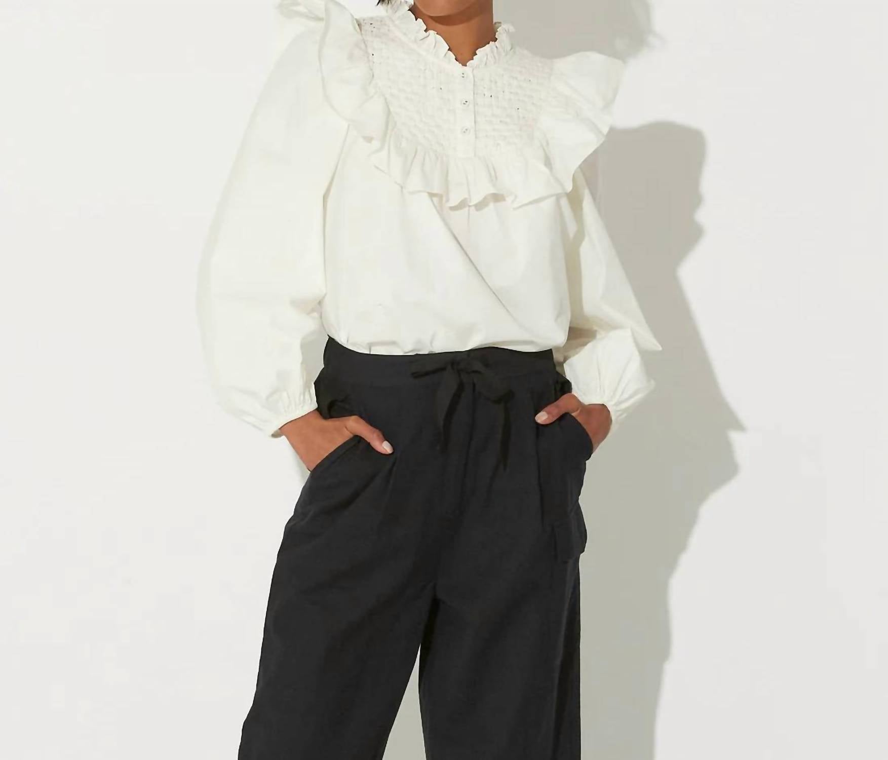 Новинка от Cleobella. Блузка Vivienne — идеальный топ для сочетания с любимыми джинсами или юбкой. Изготовленная из 100% органического хлопкового поплина, сертифицированного GOTS, эта модель с замысловатым переплетением и оборками — классика, которая останется в вашем экологичном гардеробе на многие сезоны! Меган носит маленький размер, а Келси — большой.