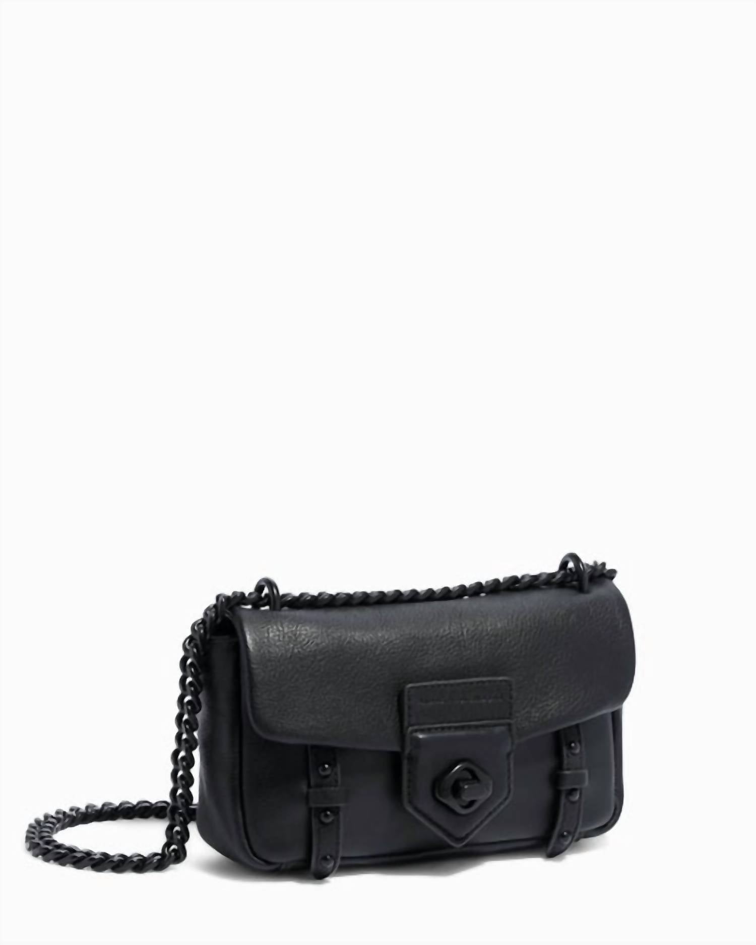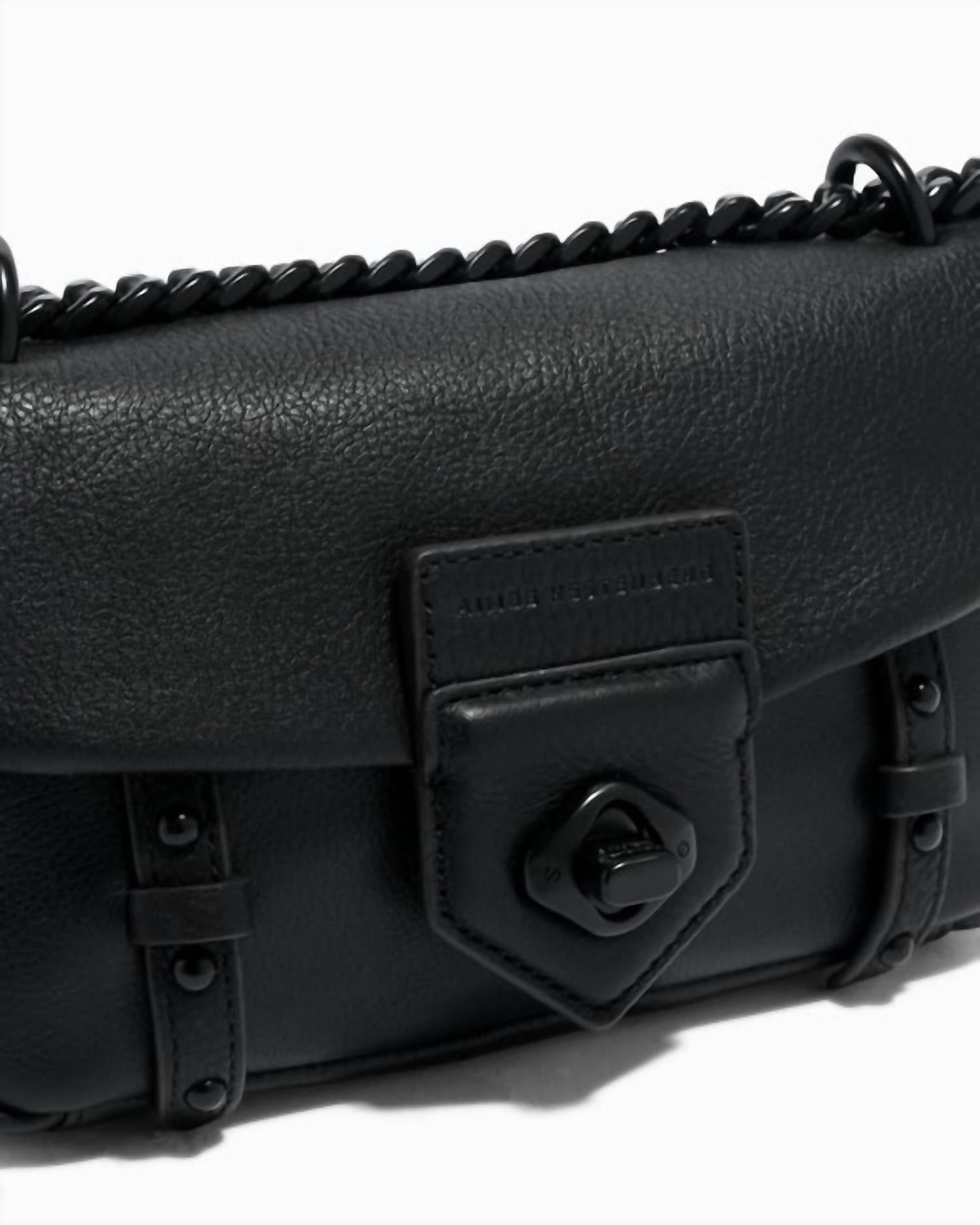 Размеры: высота — 3,5 дюйма, ширина — 7,5 дюйма, глубина — 2 дюйма. Длина ремешка — 13 дюймов. Кожа перчаточного дубления с индивидуальной фурнитурой. Клапан с поворотным замком. Ремень-цепочка через плечо. 1 внешний накладной карман сзади. 1 внутренний карман на молнии. 3 внутренних отделения для кредитных карт.