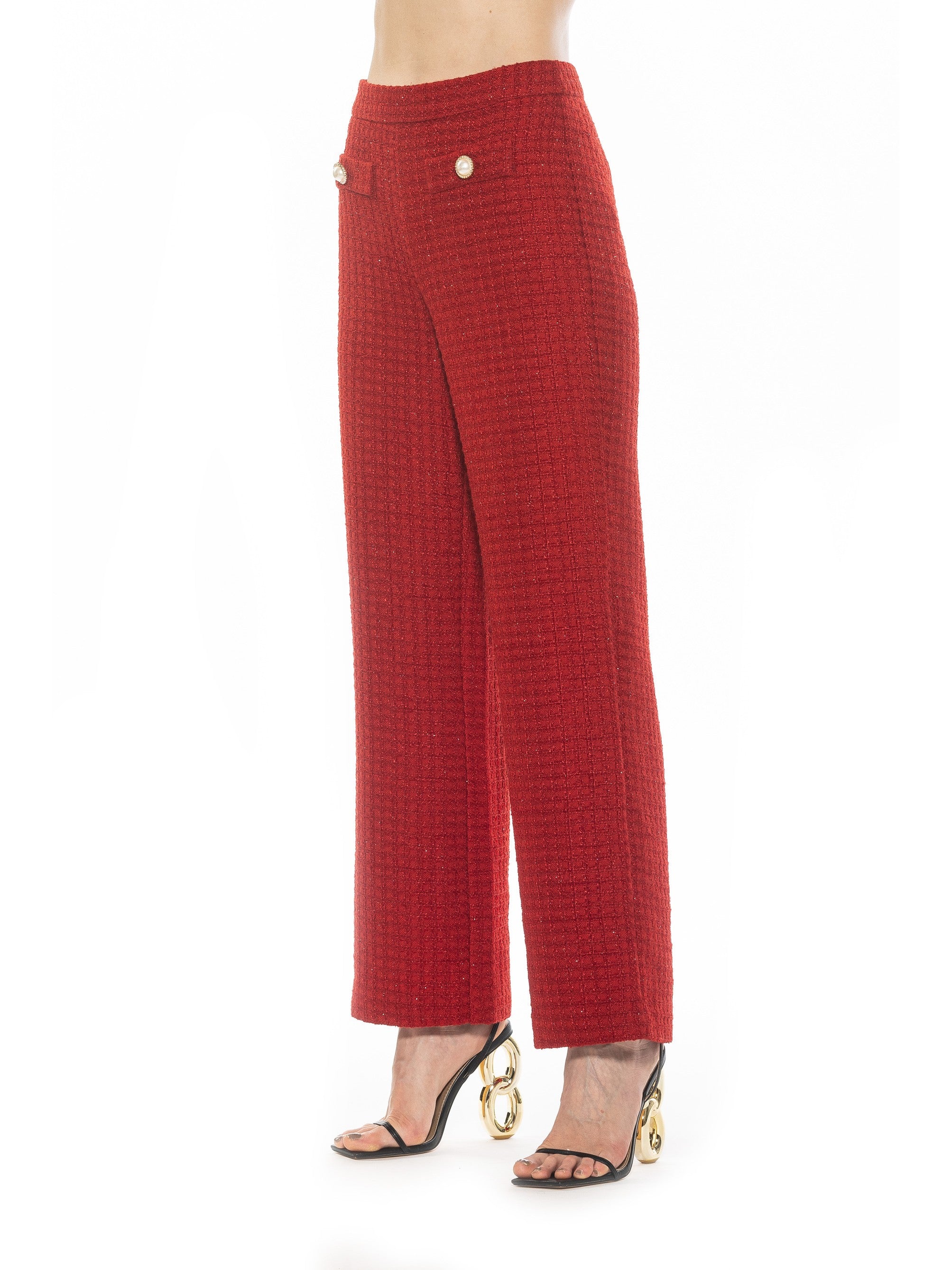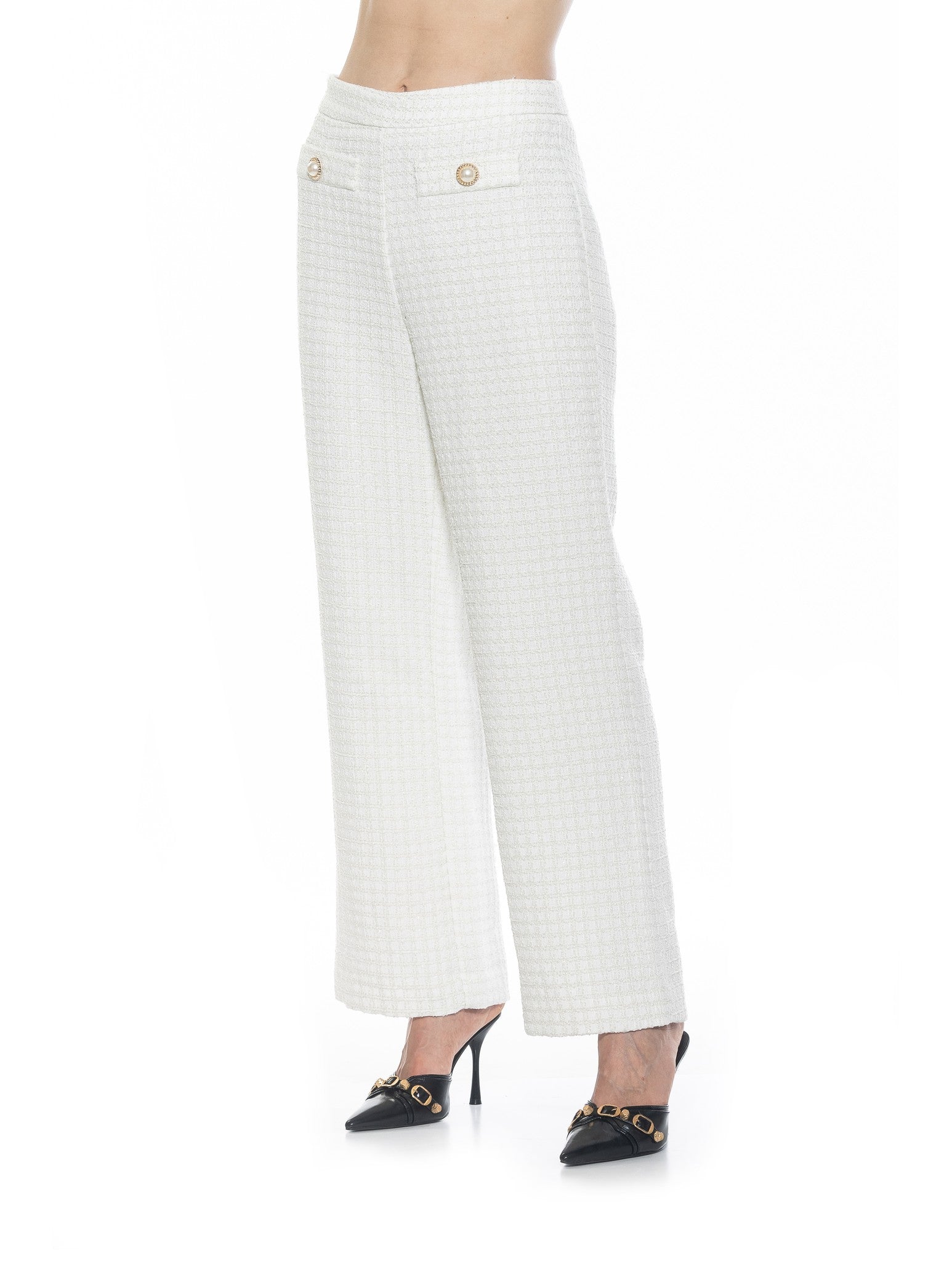 Сделайте заявление с вневременным дизайном брюк Jaden. Изготовленные из твида и перламутровых пуговиц, они имеют силуэт с высокой талией и два передних кармана. Поднимите свой образ на новый уровень с классической изысканностью!