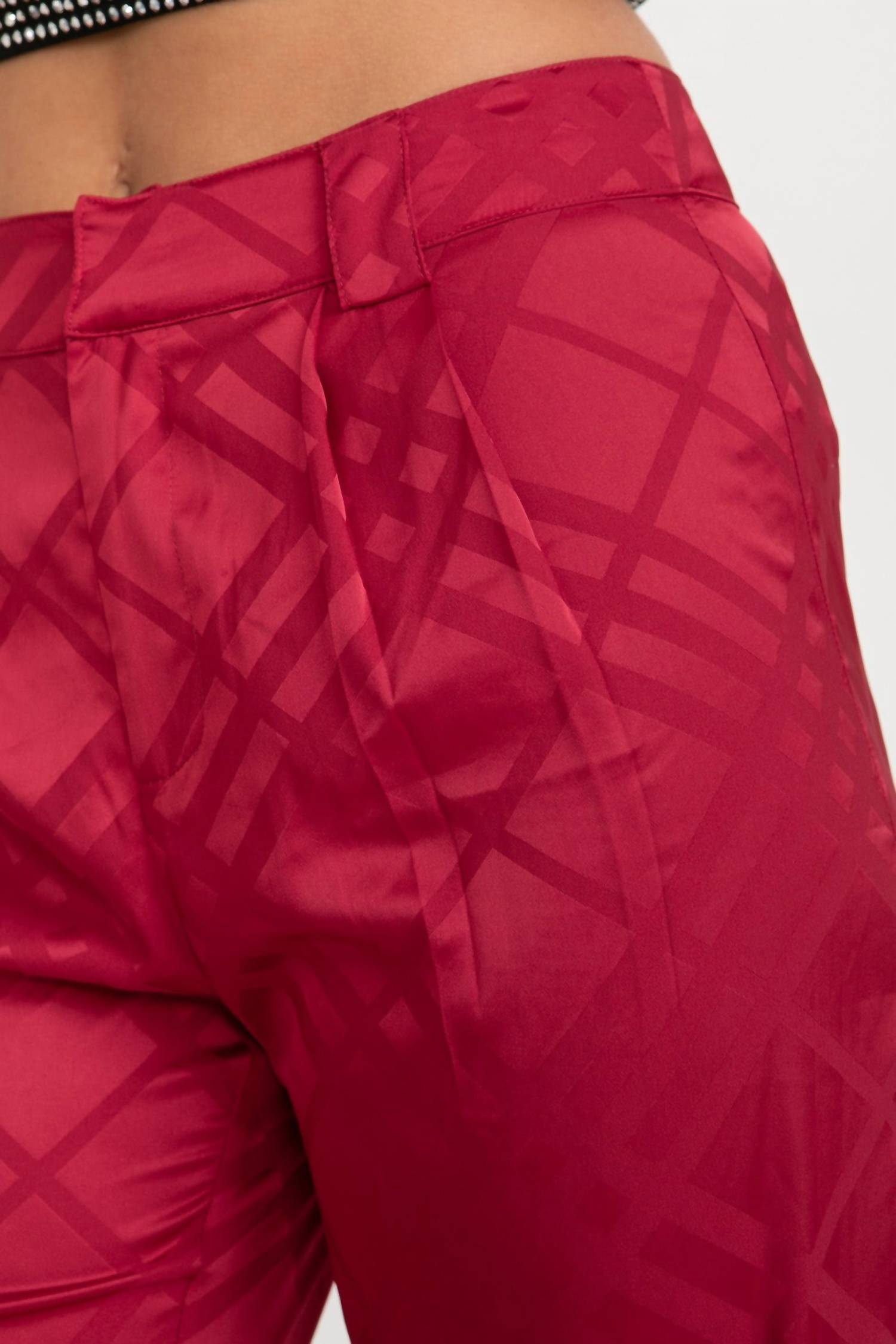 Эти атласные брюки в праздничную клетку имеют высокую посадку с застежкой-молнией спереди и крючком. Они сделаны из 97% полиэстера и 3% спандекса. Брюки без подкладки. Ручная стирка в холодной воде, сушка на горизонтальной поверхности или сушка в сушильной машине.