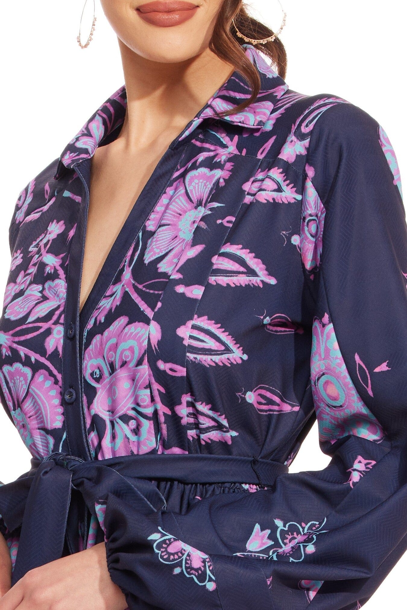 Обновите свой гардероб этим красочным платьем-рубашкой. Этот фасон с длинными рукавами-фонариками и классическим воротником рубашки будет бесконечно универсальным. Застежка на пуговицы спереди и пояс на талии стягивают талию и создают привлекательную посадку.