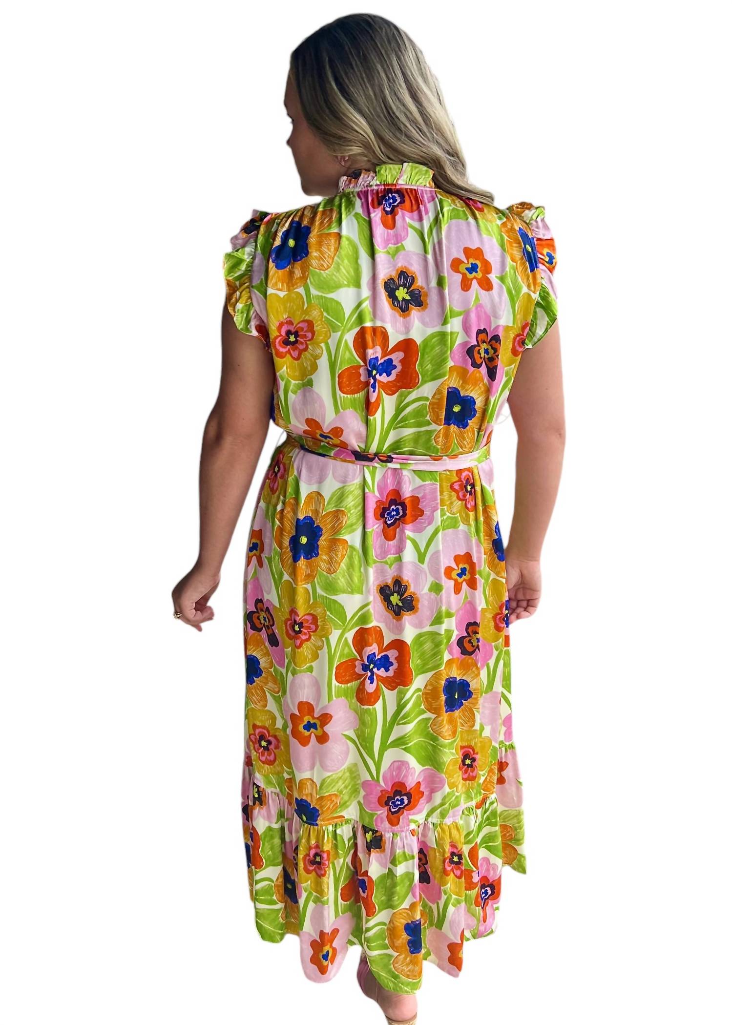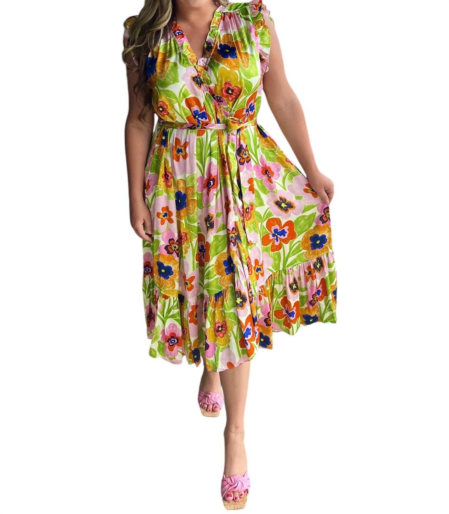 Это платье без рукавов, изготовленное из 100% вискозы, имеет настоящий облегающий крой, украшенный игривым цветочным узором, который идеально подходит для летних случаев. А-силуэт грациозно переходит в длину миди, обеспечивая элегантность с каждым шагом. С удобной застежкой-липучкой и V-образным вырезом это платье — ваш выбор для непринужденного шика.