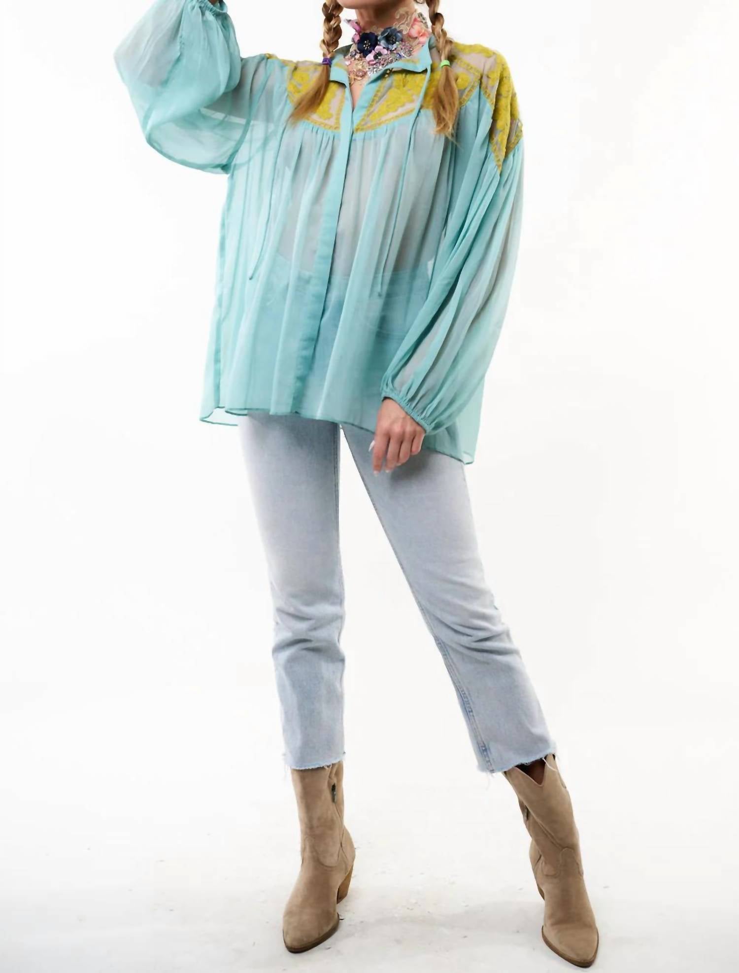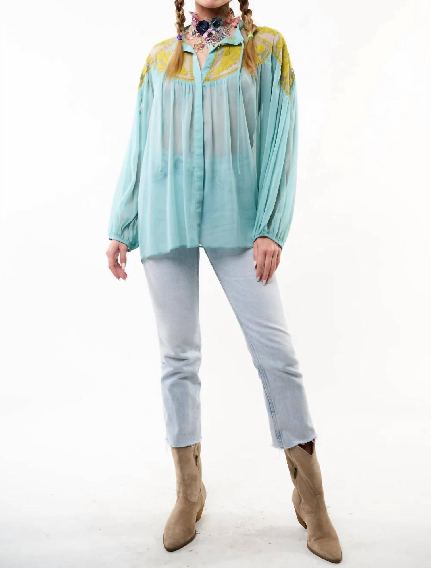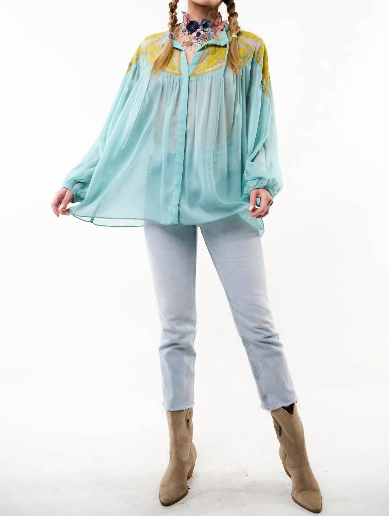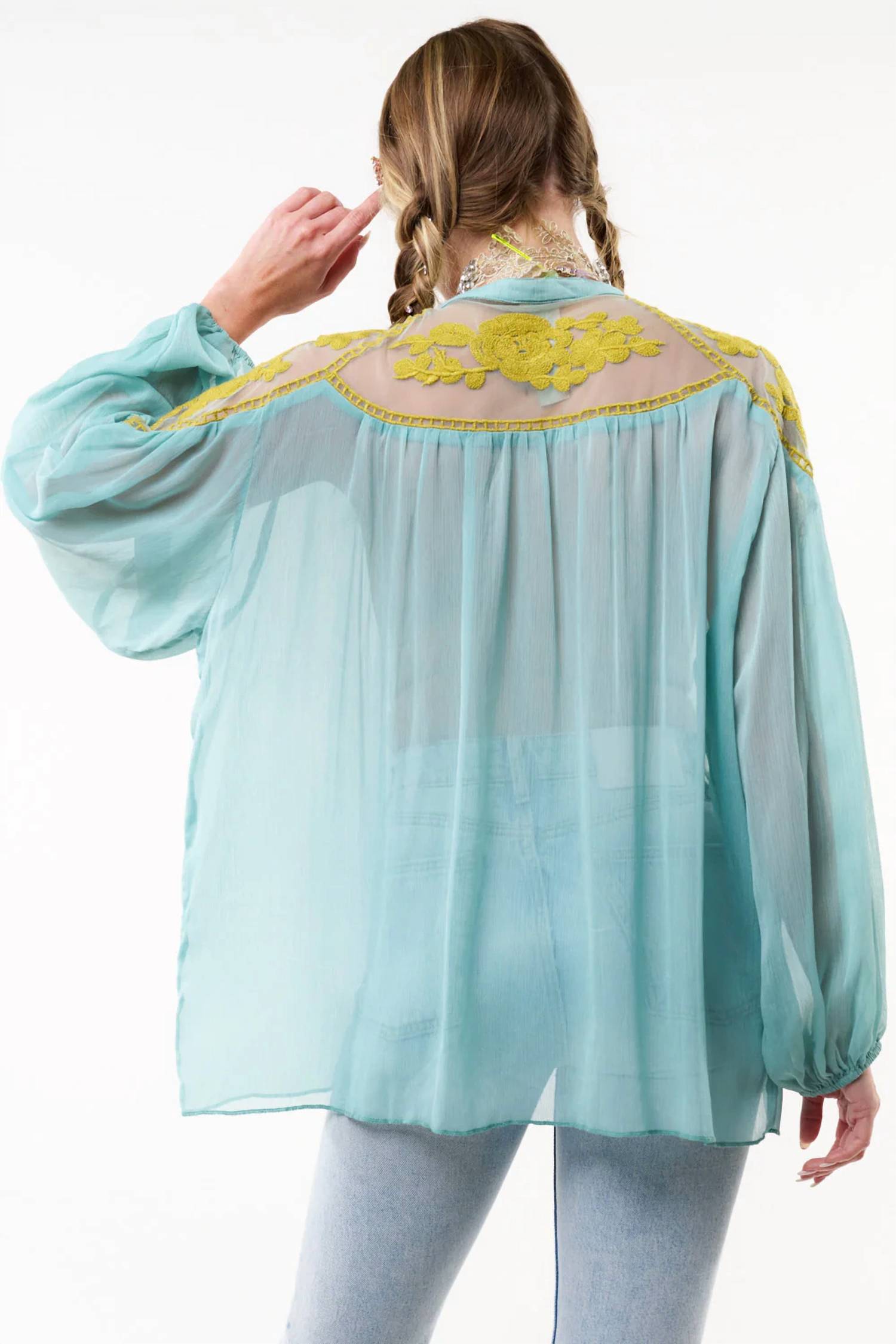 • Блуза Camellia — это нежная прозрачная ткань с вышитыми деталями в винтажном стиле.