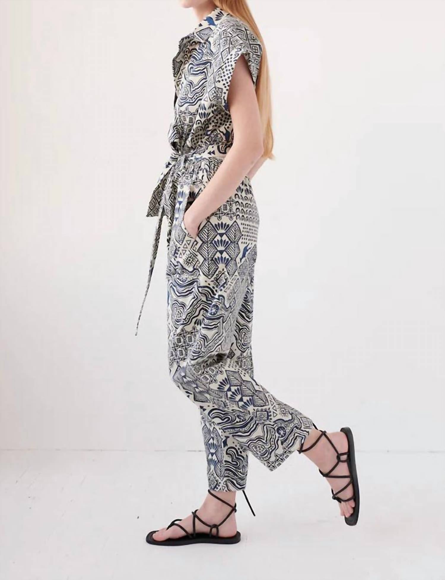 Этот практичный комбинезон Nama изготовлен из дышащего органического хлопкового твила с принтом в этническом и племенном стиле, имеет подвернутые манжеты и частично эластичный пояс. Съемный пояс для смягчения свободного кроя. Состав - 97% органический хлопок, 3% лайкра. Цвет - белый маали. Посадка - соответствует размеру
