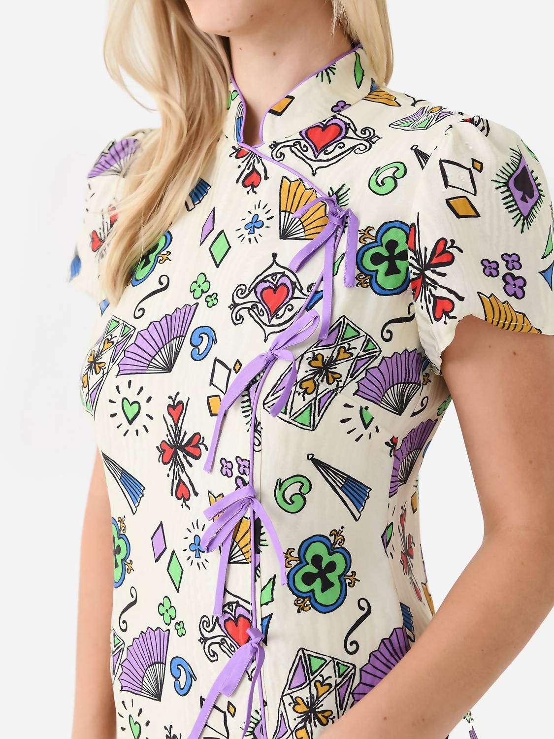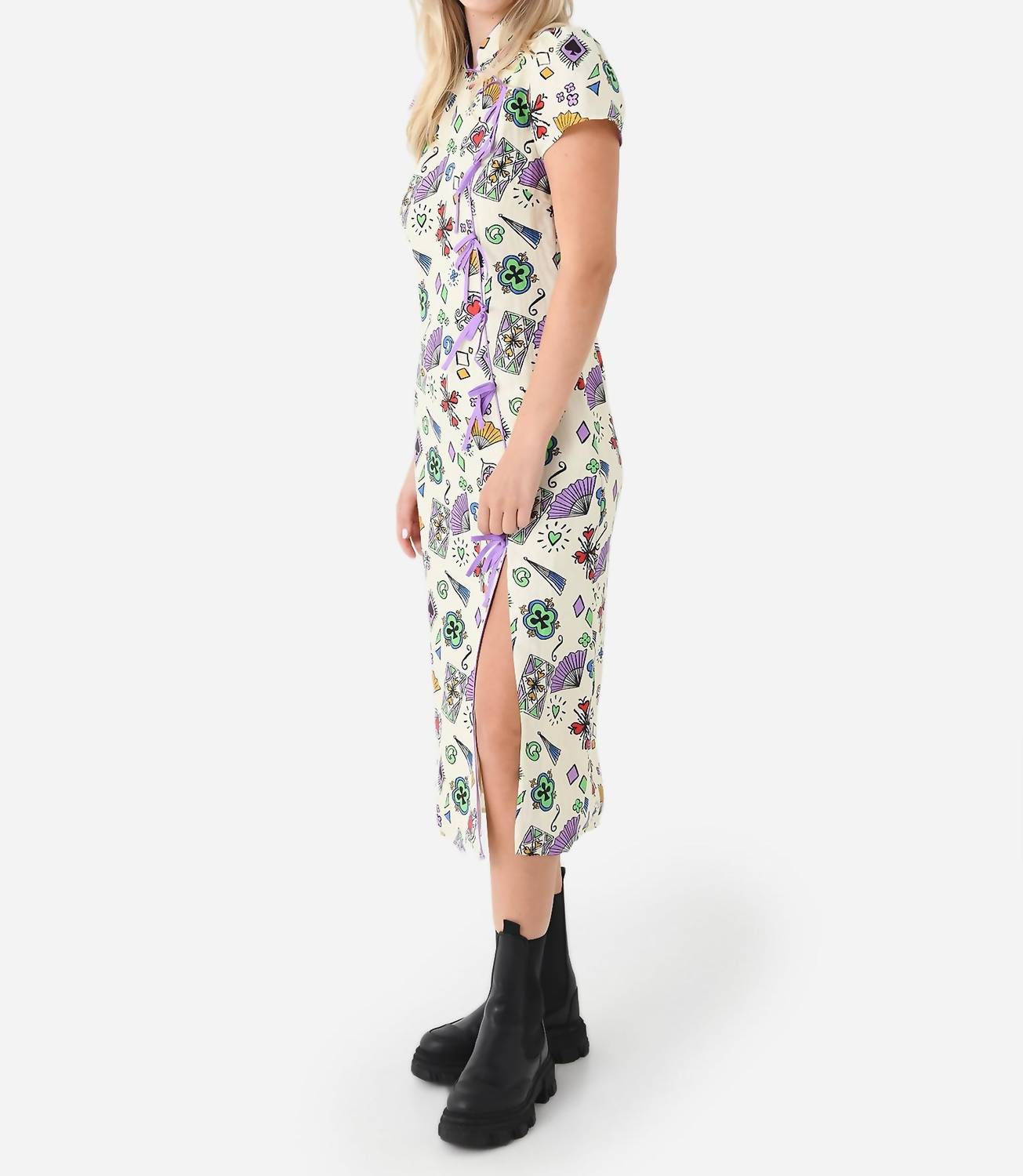 Платье миди классического кроя с воротником-стойкой, застежкой-молнией сзади, завязками по бокам, разрезом сбоку и контрастной окантовкой. Платье демонстрирует новаторский принт по всей поверхности и выполнено из смеси 70% вискозы и 30% полиамида. На модели размер US 4/UK 8. Параметры модели: рост 5'8.5" | бюст 32C | талия 25" | бедра 38.5" | размер платья 4-6 (US).