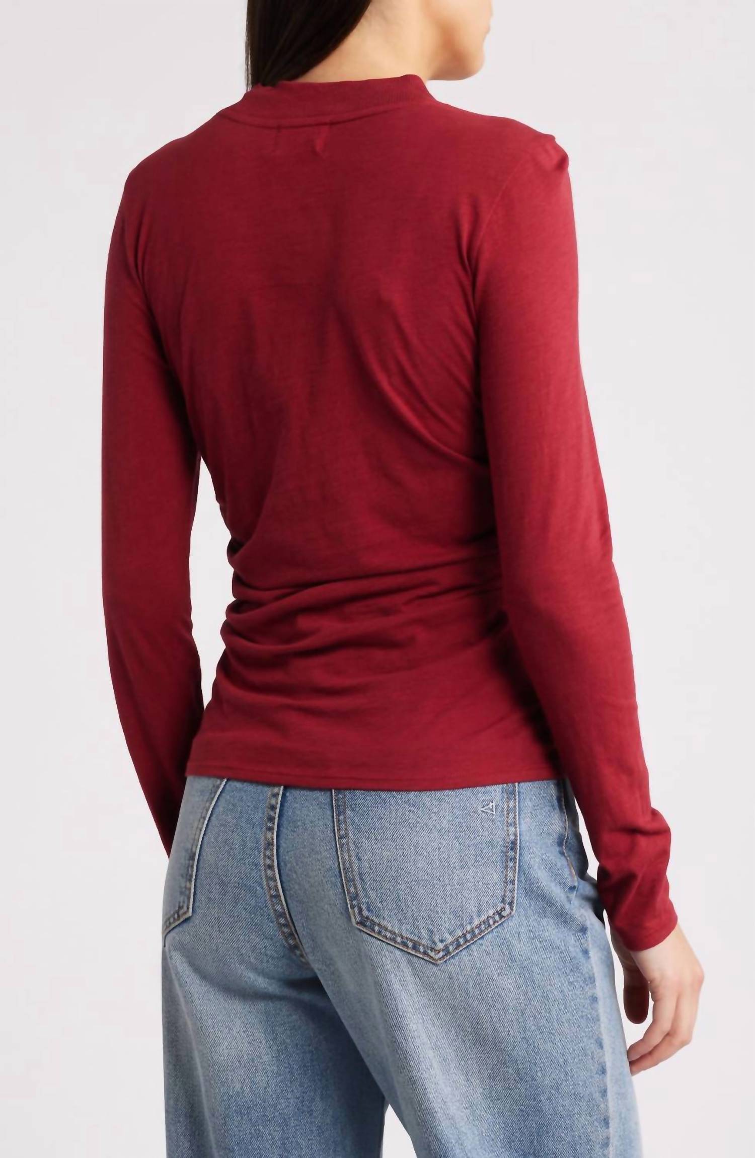 Идеальная футболка с длинным рукавом, которая подойдет практически ко всему. Испытайте топ с длинным рукавом Nation LTD Rita, стильный выбор в ярком датском красном цвете. Изготовленный из хлопка, этот однотонный топ имеет круглый вырез и универсальные боковые сборки, длина 26 дюймов для удобной посадки. С удобной застежкой-липучкой он предназначен для легкой повседневной носки. Уход - машинная стирка и сушка в сушильной машине.