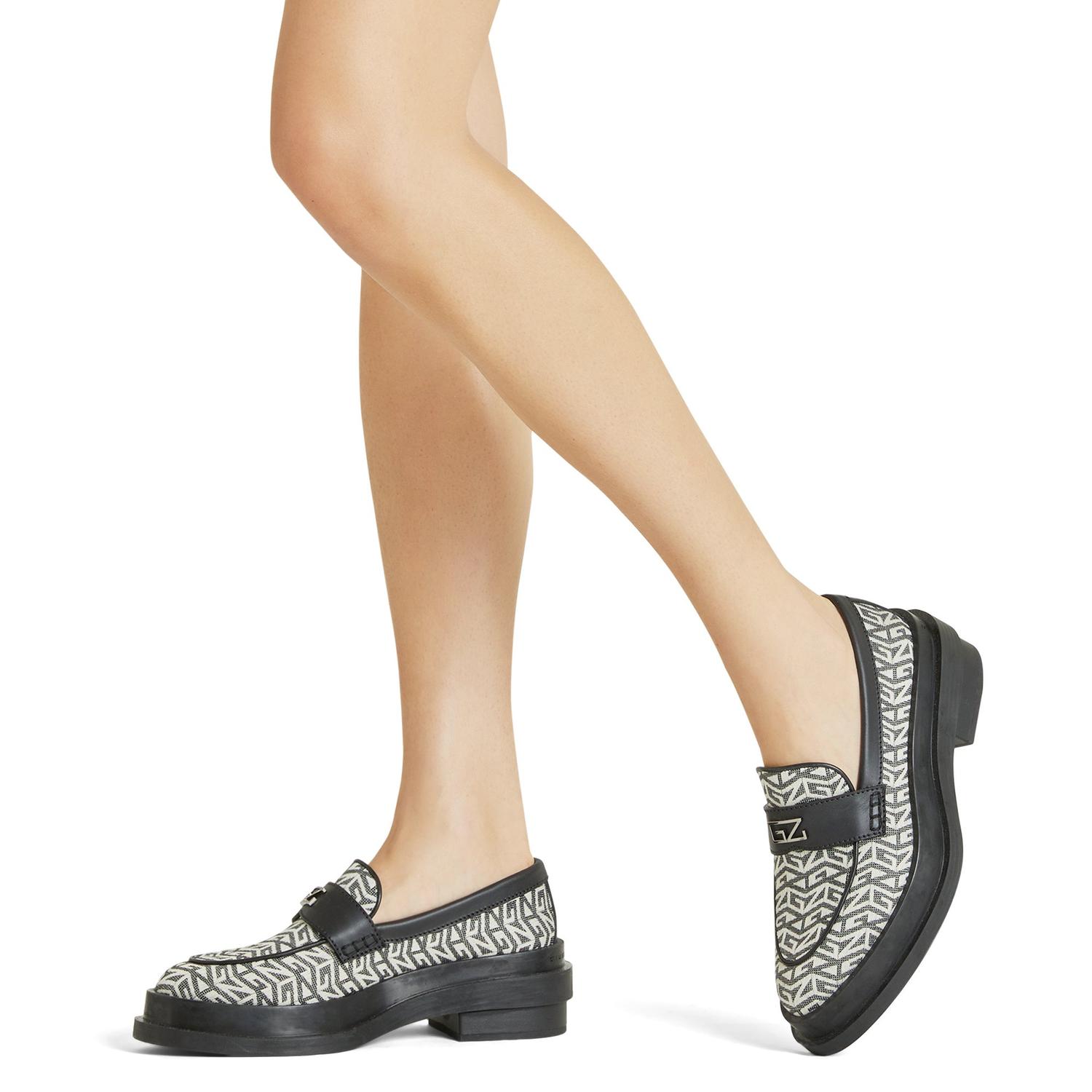 • Жаккардовая ткань цвета экрю/черного цвета из 100% хлопка и черная кожа.
