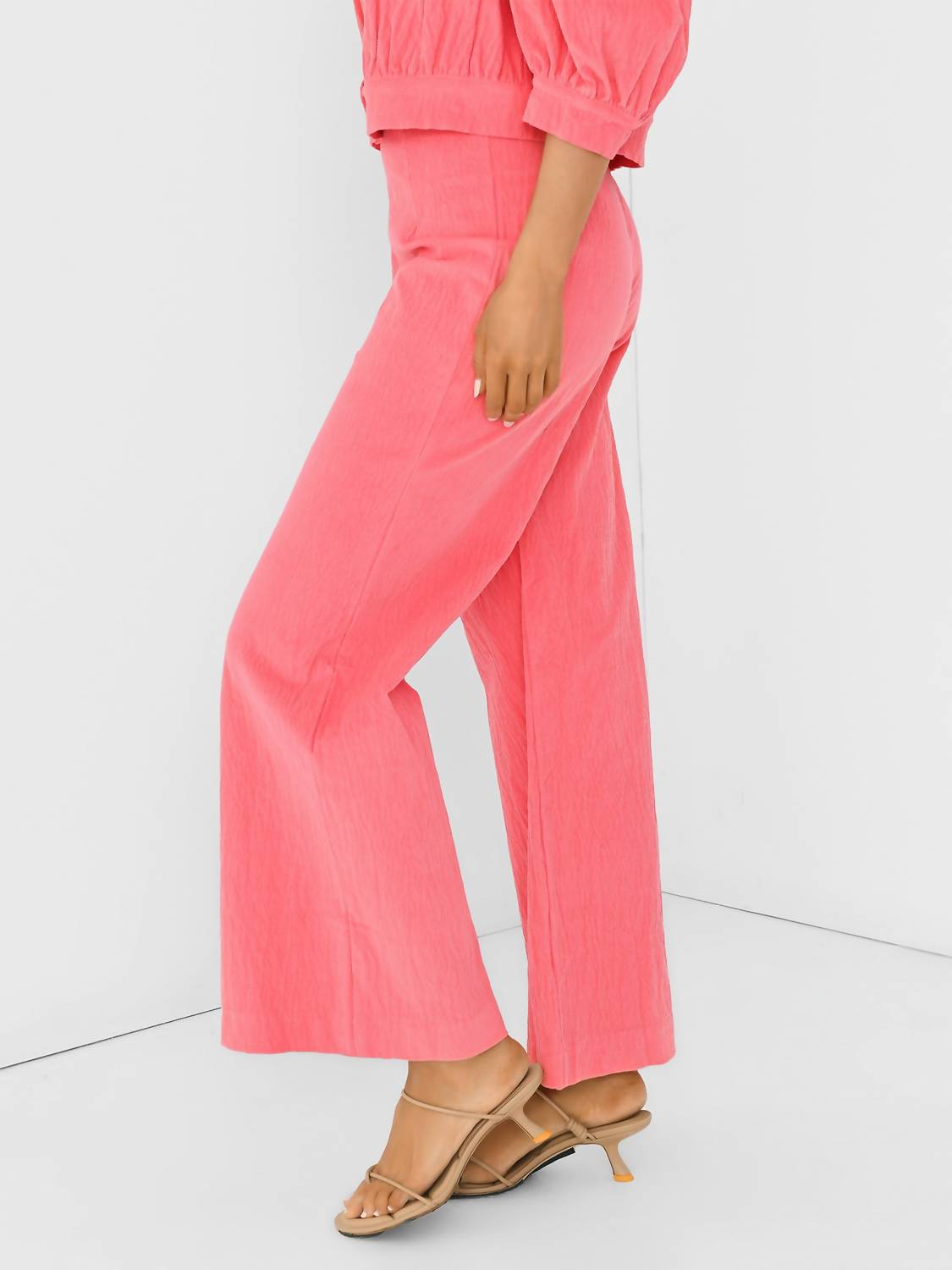 Широкие брюки с высокой посадкой и внутренним швом длиной до щиколотки, с завышенной талией, застежкой-молнией сзади и широким силуэтом. Изготовлены из хлопковой смеси с классической посадкой. На модели брюки размера Small. Параметры модели: рост 5 футов 9 дюймов, обхват груди 34B, обхват талии 26 дюймов, обхват бедер 37 дюймов, размер платья 2-4 (US).