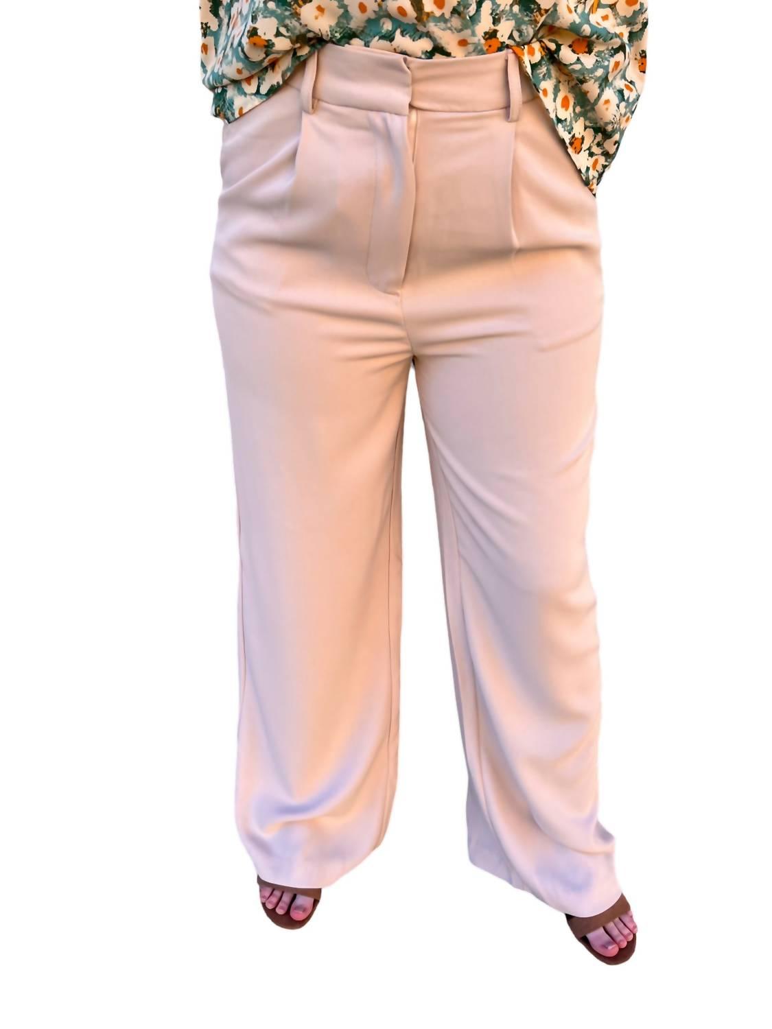 Широкие брюки Solid Point от Raella изготовлены из высококачественной бежевой ткани, имеют широкие штанины и уникальные складки спереди, которые выгодно подчеркивают фигуру.