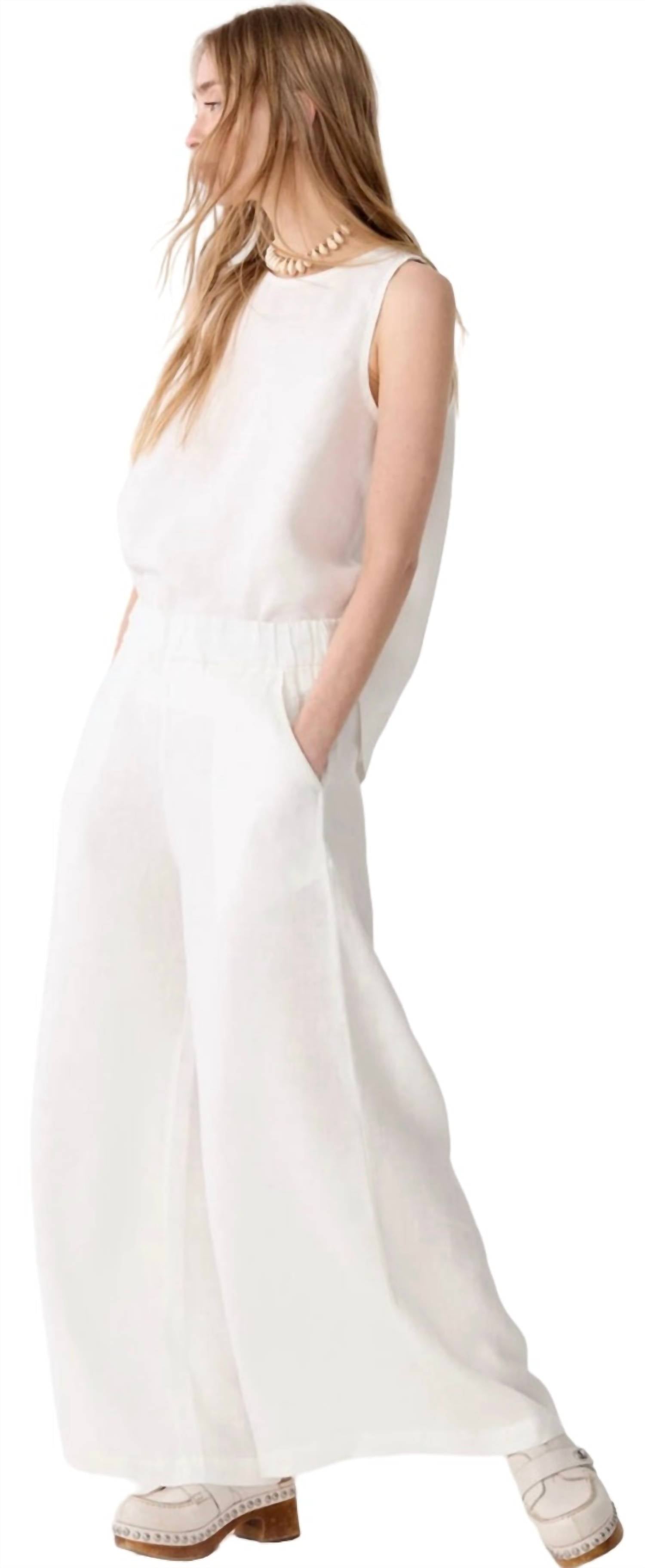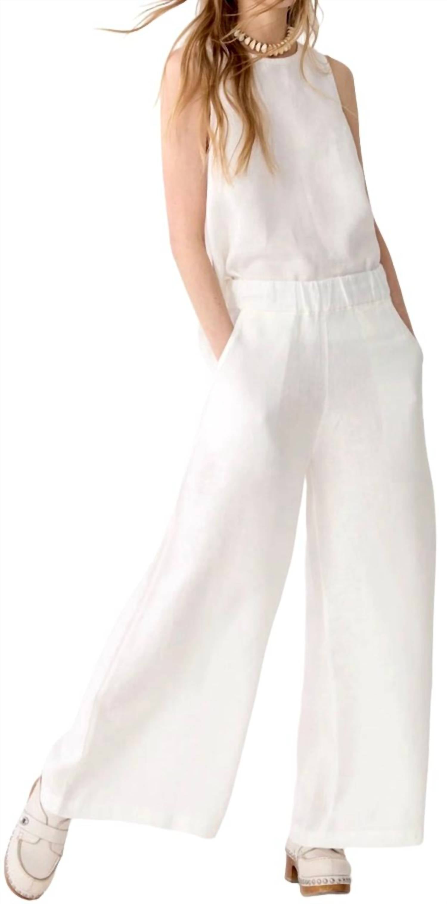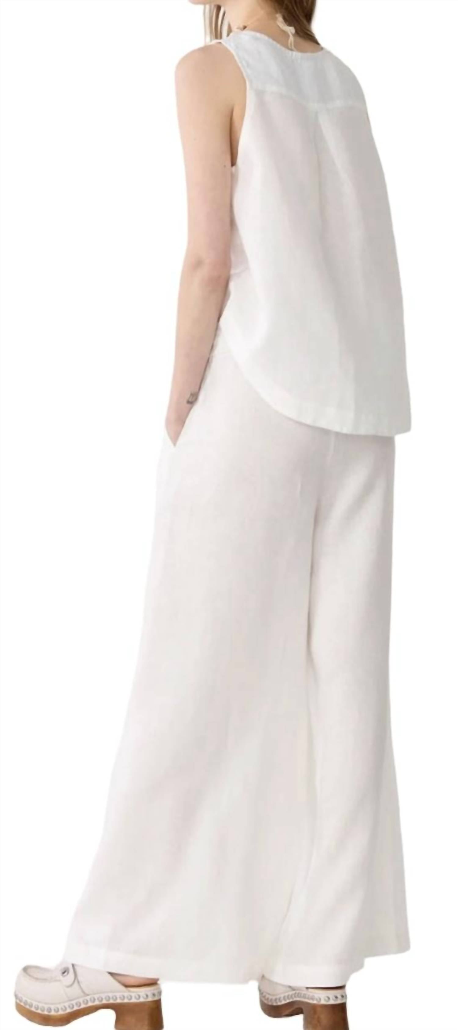 Эластичный пояс, боковые карманы. Очень широкие штанины. Соответствует размеру. Ручная стирка в холодной воде, сушить на горизонтальной поверхности. 100% органический лен.