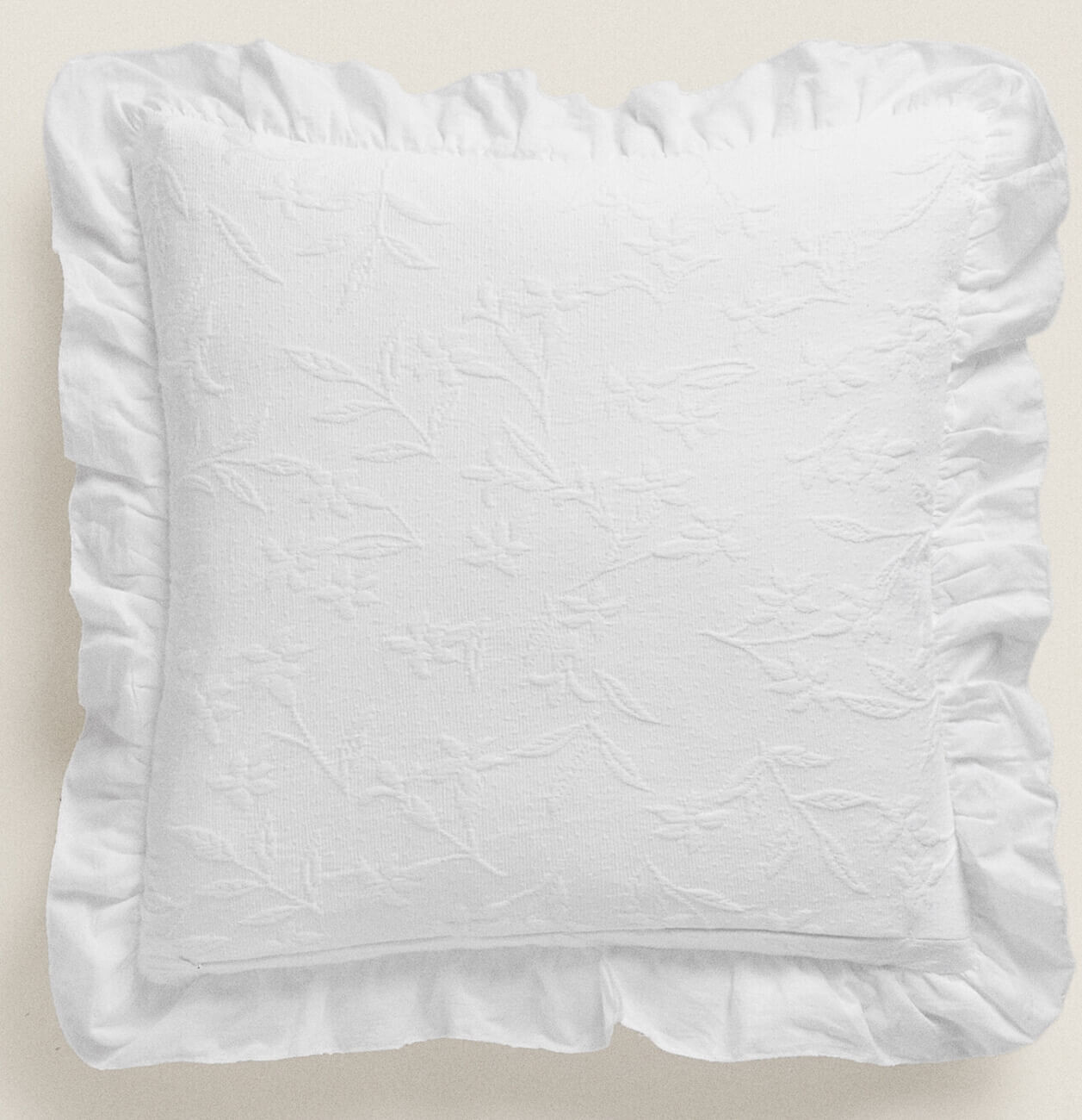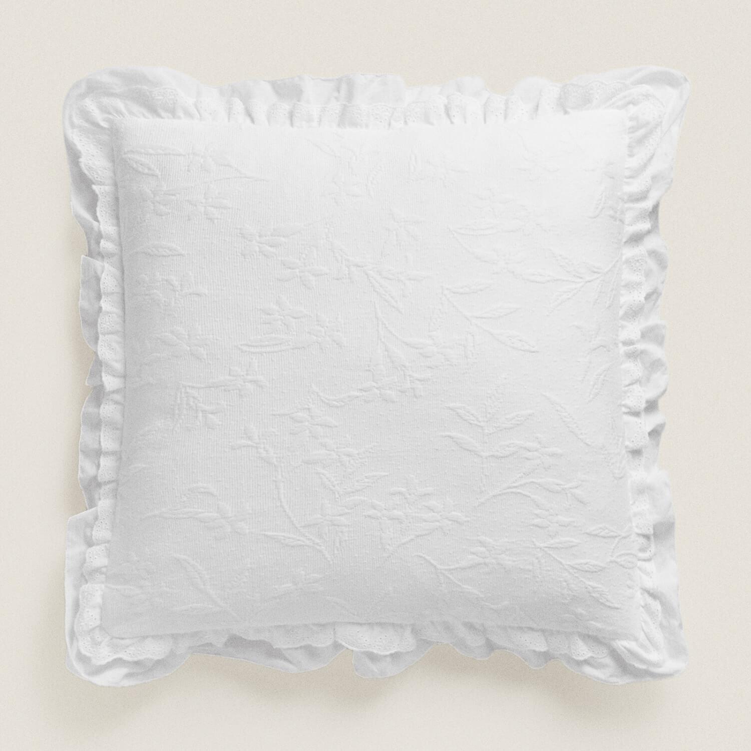 Хлопковый чехол на подушку с вышивкой в виде листьев и рюшами.