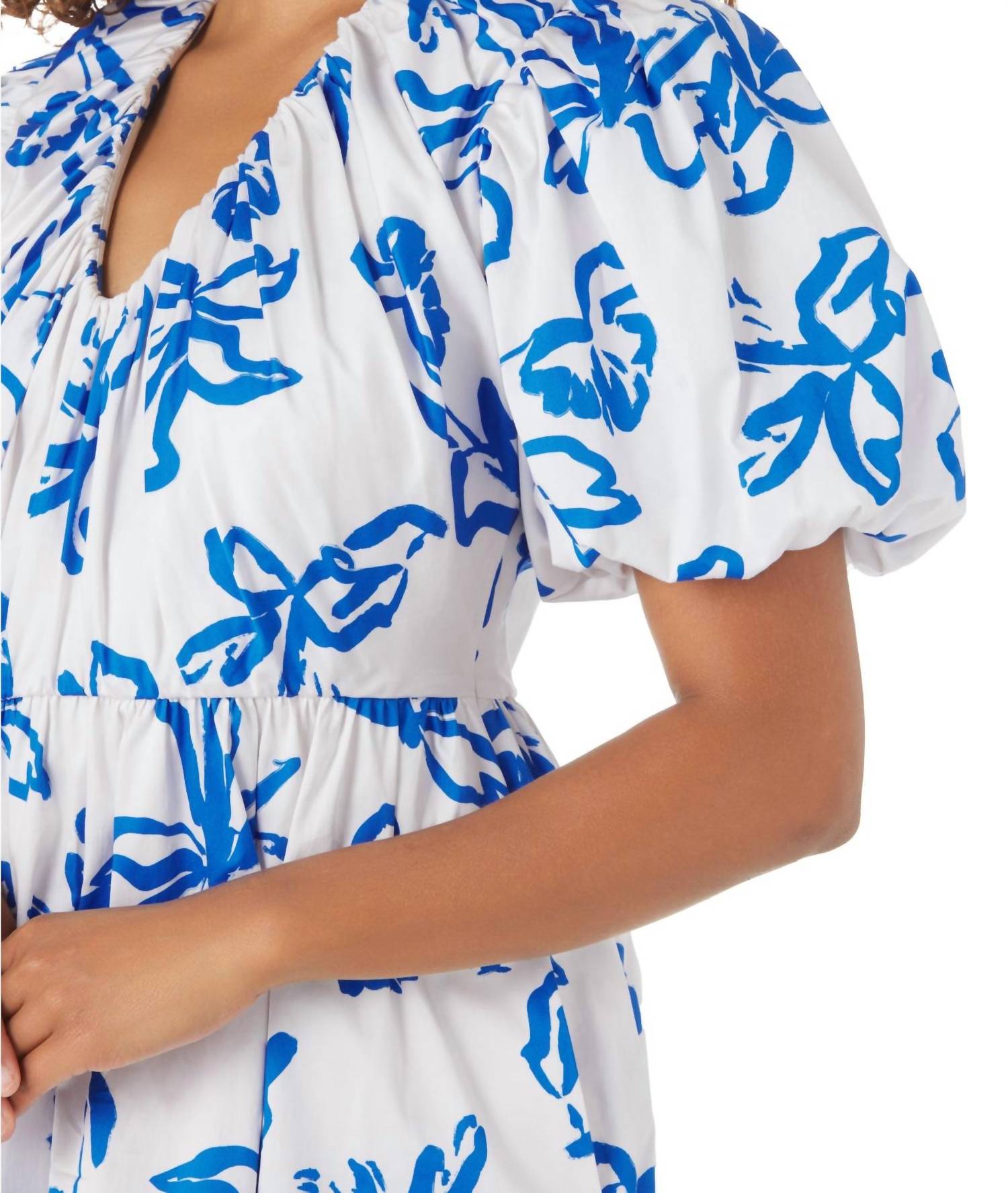 Это платье Rainey — обязательное платье длиной выше колена с присборенным лифом, приталенной талией и юбкой А-силуэта. Имеет округлый V-образный вырез спереди и сзади, завязку на горловине сзади, рукав-фонарик с оборкой, эластичный пояс и пышную юбку. Полностью на подкладке с карманами в боковых швах и потайной молнией сбоку. Полисатиновая тафта. Длина (размер small) — 35,25".