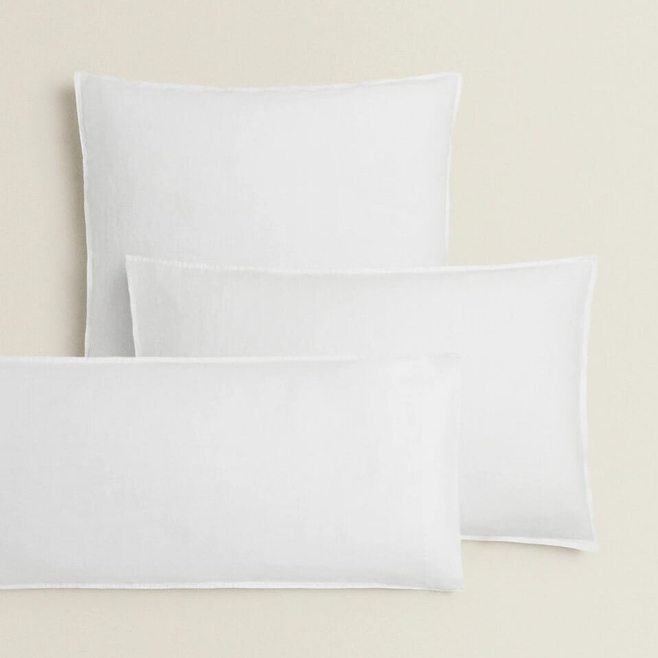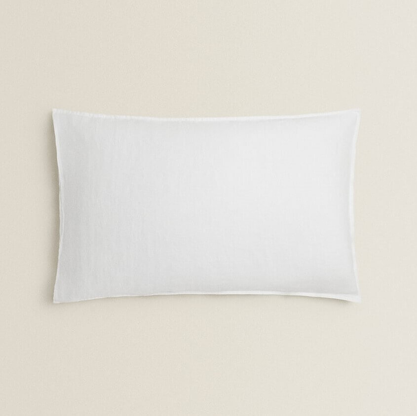 Однотонная наволочка из стираного льна плотностью 160 GSM с двойной строчкой по краю. Внутренняя застежка-клапан с одной стороны, за исключением размеров 45 х 110 см и 45 х 155 см, которые открыты с обоих концов.