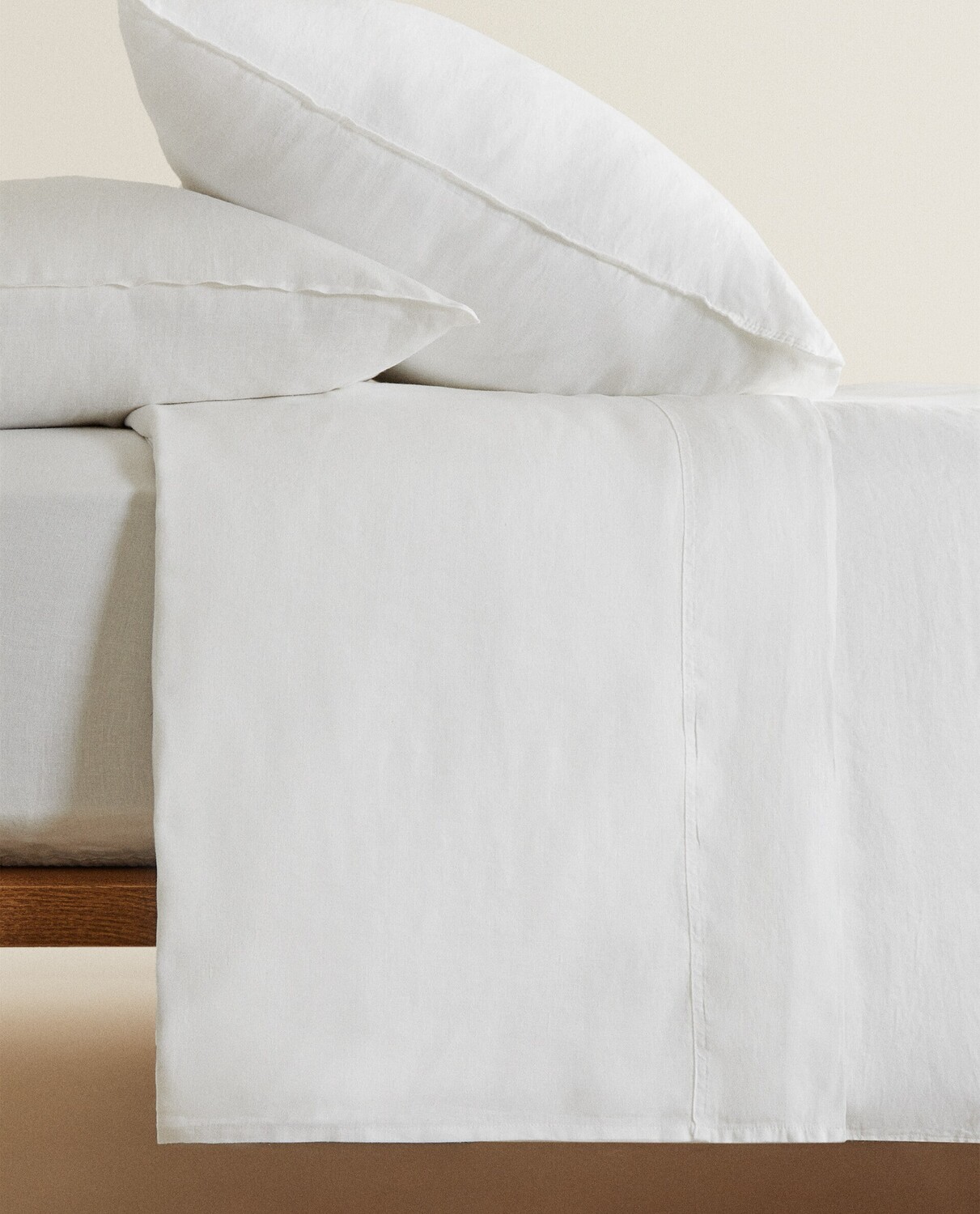 Однотонный пододеяльник из стираного льна плотностью 160 г/м² с двойной декоративной строчкой по контуру. Застегивается на потайные пуговицы по нижнему краю. Благодаря применению технологии стирки ткань является более мягкой и струящейся.