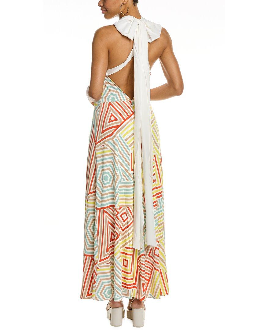 • Платье миди разноцветное с V-образным вырезом, завязывающимся сзади поясом и перекрещивающимися бретелями сзади
