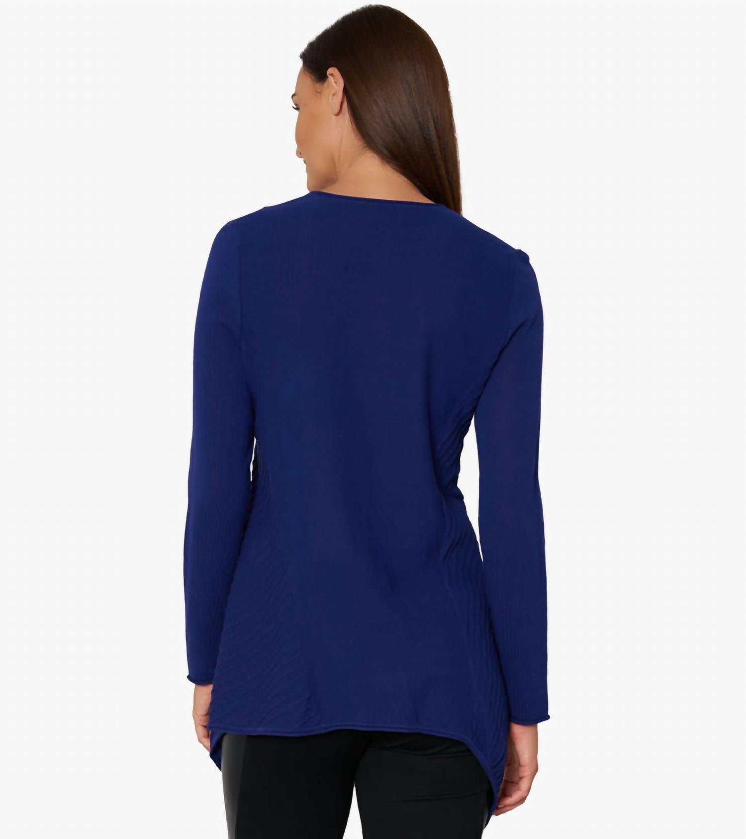 Искусно связано с уникальным асимметричным подолом А-силуэта и соблазнительным круглым вырезом. Длина по спинке составляет около 28 дюймов для размера S. Модель ростом 5 футов 11 дюймов носит размер S.