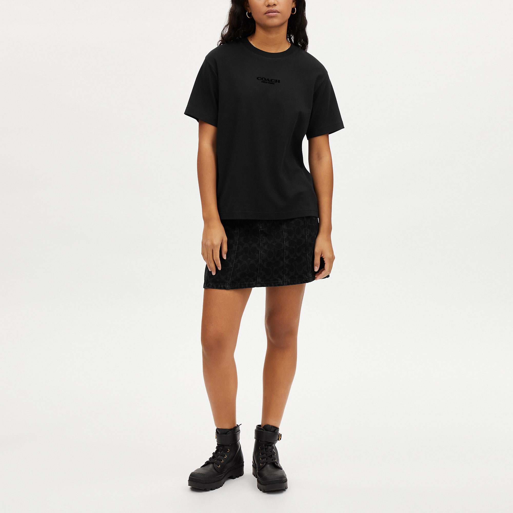 100% хлопок Трикотаж в рубчик - 98% хлопок 2% эластан Длина - 25 1/4 Рост модели 5 футов 10 дюймов (178 см), грудь 31 (79 см), талия 24 (61 см), бедра 35 (89 см), размер S Модель № CL354 | Coach Outlet Фирменный топ - черный, размер - L