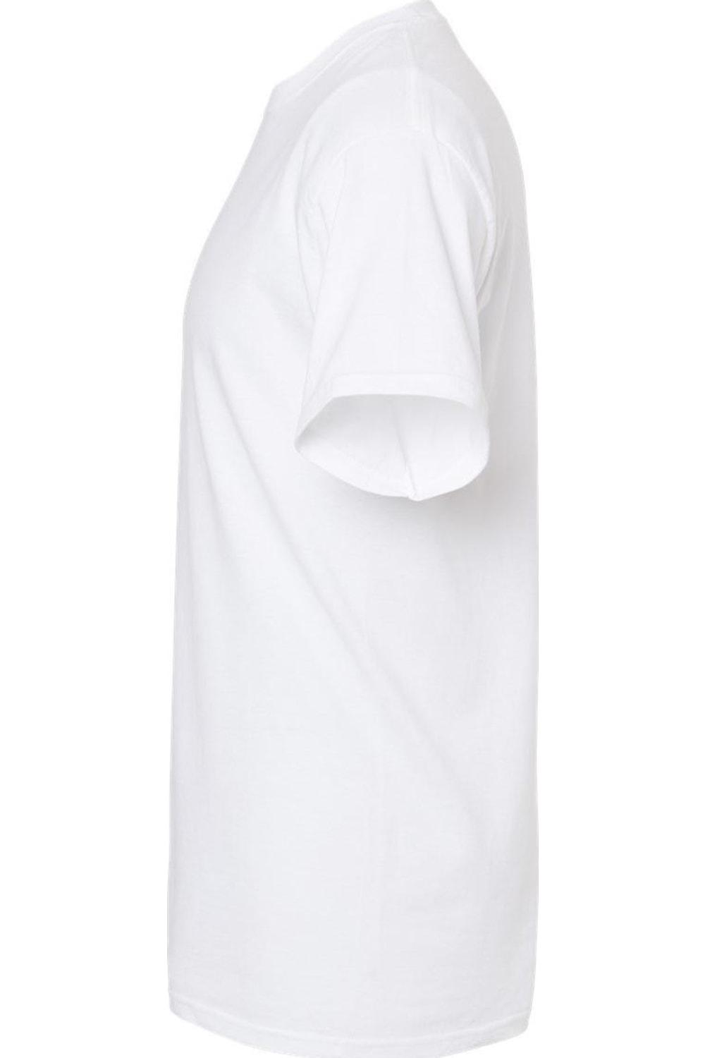 5 унций/ярд (США), 8,1 унций/л ярд (Калифорния), 100% хлопок с предварительной усадкой, 23 одинарных пары. Athletic Grey — 90/10 хлопок/полиэстер (только США). Sport Grey — 90/10 хлопок/полиэстер (только Калифорния). Цвета Heather и Safety — 50/50 хлопок/полиэстер. Проклеенная горловина и плечи. Двойная игла на рукавах и подол. Двойная игла на шее с потайным швом. Трубчатая конструкция. Корпус на четверть оборота. Отрывная этикетка. Сертифицировано USMCA.
