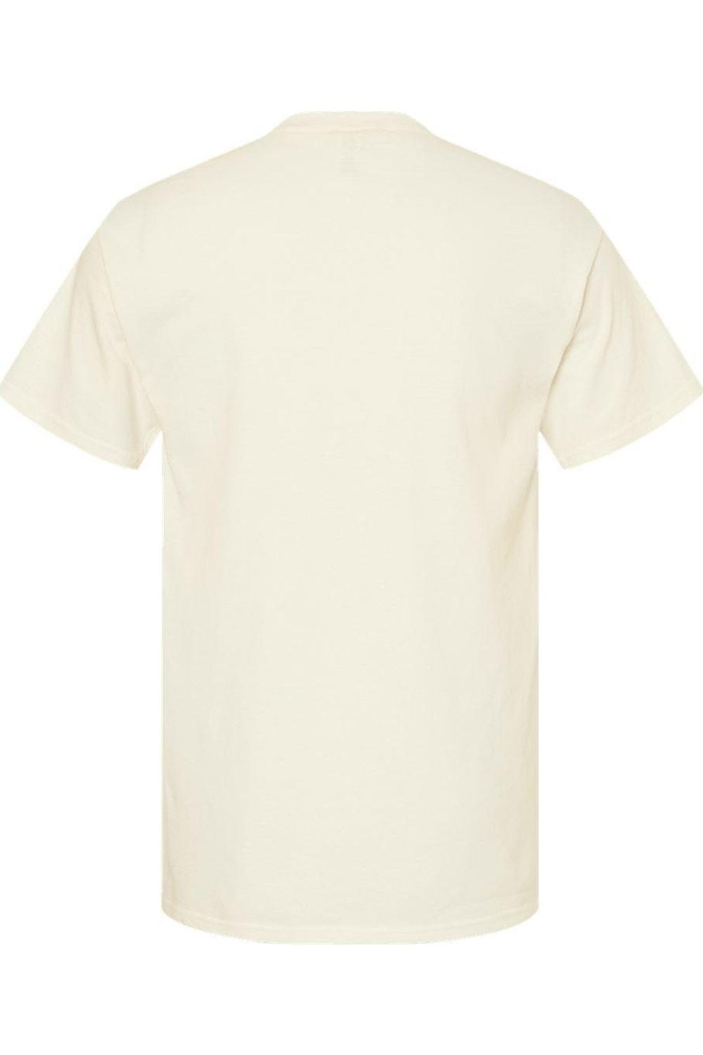 5 унций/ярд (США), 8,1 унций/л ярд (Калифорния), 100% хлопок с предварительной усадкой, 23 одинарных пары. Athletic Grey — 90/10 хлопок/полиэстер (только США). Sport Grey — 90/10 хлопок/полиэстер (только Калифорния). Цвета Heather и Safety — 50/50 хлопок/полиэстер. Проклеенная горловина и плечи. Двойная игла на рукавах и подол. Двойная игла на шее с потайным швом. Трубчатая конструкция. Корпус на четверть оборота. Отрывная этикетка. Сертифицировано USMCA.