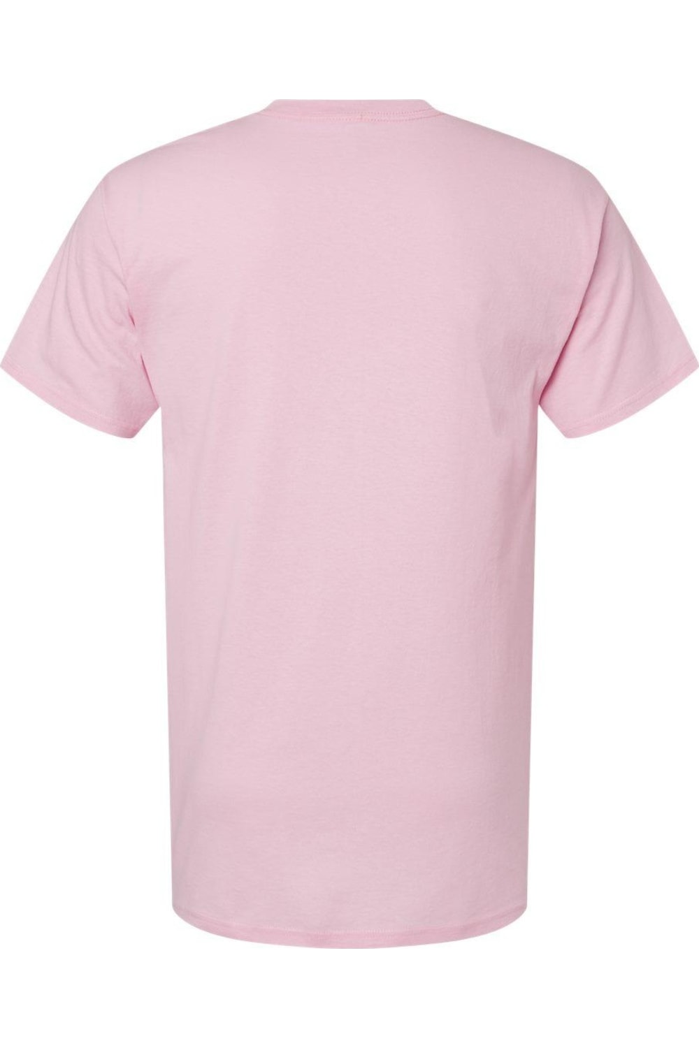 5 унций/ярд (США), 8,1 унций/л ярд (Калифорния), 100% хлопок с предварительной усадкой, 23 одинарных пары. Athletic Grey — 90/10 хлопок/полиэстер (только США). Sport Grey — 90/10 хлопок/полиэстер (только Калифорния). Цвета Heather и Safety — 50/50 хлопок/полиэстер. Проклеенная горловина и плечи. Двойная игла на рукавах и подол. Двойная игла на шее с потайным швом. Трубчатая конструкция. Корпус на четверть оборота. Отрывная этикетка. Сертифицировано USMCA.