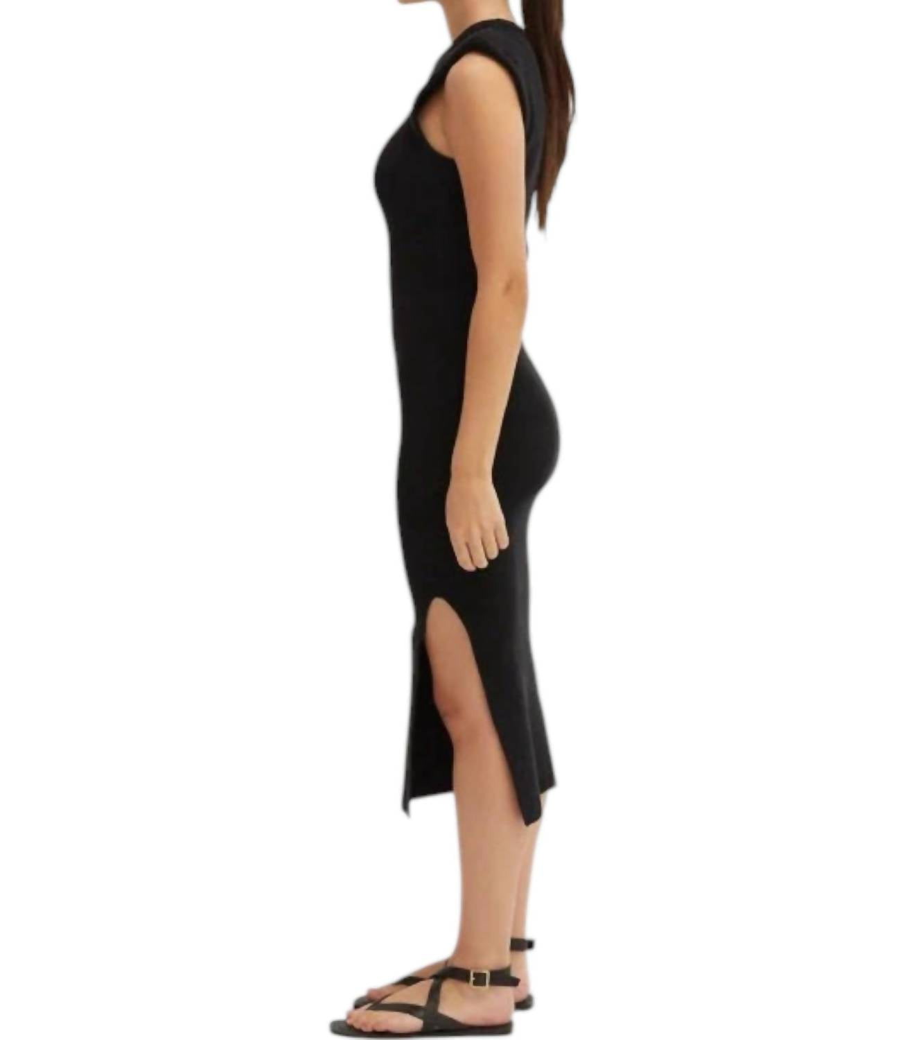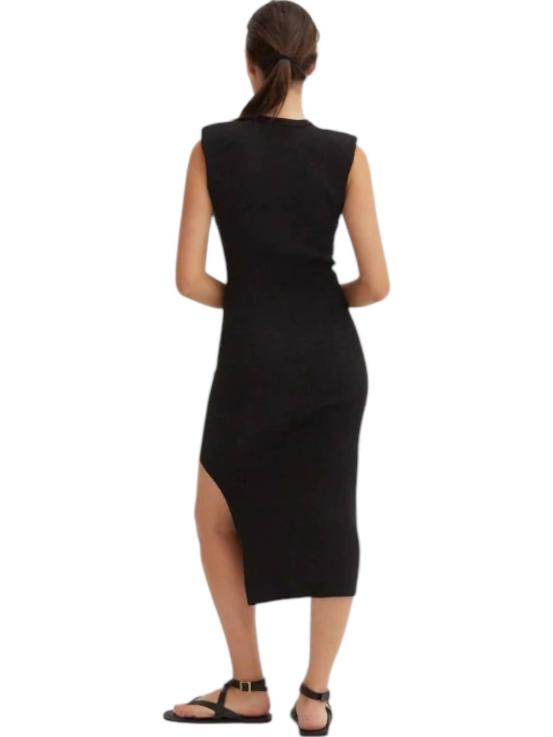 Платье макси с ребристым лифом Power Shoulder черного цвета CRESCENT