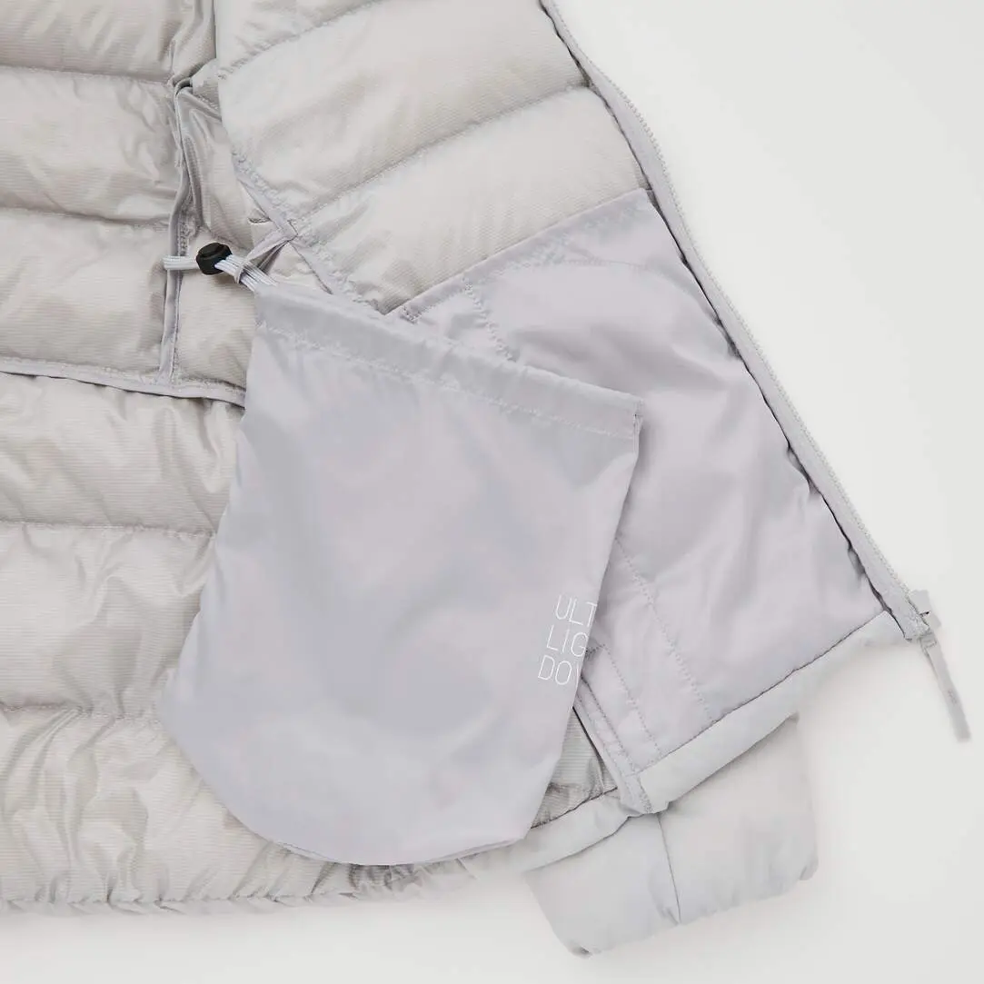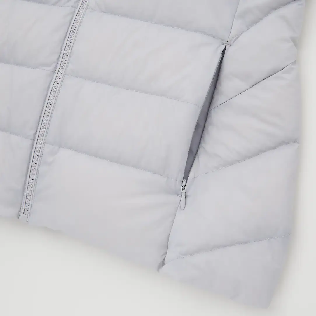Тонкий, легкий и теплый пуховик из ткани с водоотталкивающим покрытием. Антистатическая подкладка. Мягкая эластичная лента внутри манжет позволяет легко закатывать рукава. Сумка для хранения крепится к петле с изнанки.