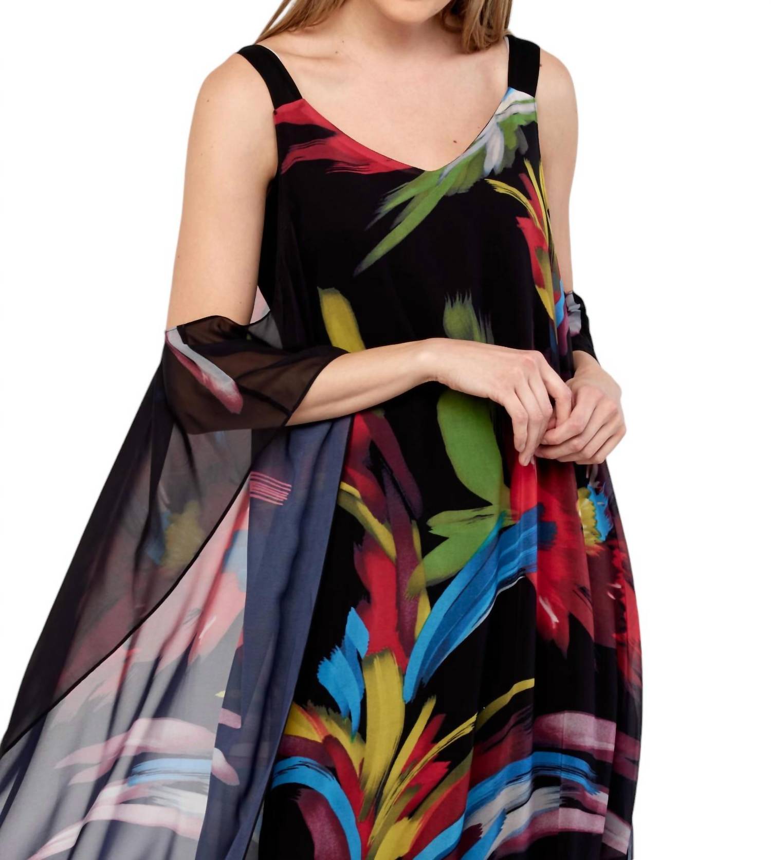 Кто не любит хорошее макси-платье? Это то, за которым вы будете тянуться сезон за сезоном. Это платье длиной до щиколотки имеет облегающий А-силуэт и элегантные рукава-накидки для нотки изысканности. V-образный вырез и дизайн без рукавов придают элегантный и современный вид, а абстрактный узор добавляет художественного колорита. Изготовлено из 100% полиэстера, оно одновременно легкое и прочное. Ручная стирка в холодной воде.