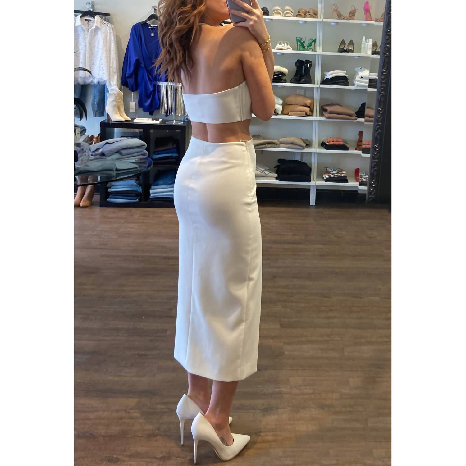 Основная часть - 67% полиэстер / 27% вискоза / 6% спандекс; Подкладка 1 - 67% полиэстер / 27% вискоза / 6% спандекс; Подкладка 2 - 100% полиэстер. Приталенная. На подкладке. Вырез халтер с боковой молнией. Скрытая боковая молния и застежка-застежка на спине. Только сухая чистка. На модели размер 4. Рост - 5 футов 7 1/2 дюйма. Бюст - 34 1/2 дюйма. Талия - 29 дюймов. Бедра - 38 дюймов.